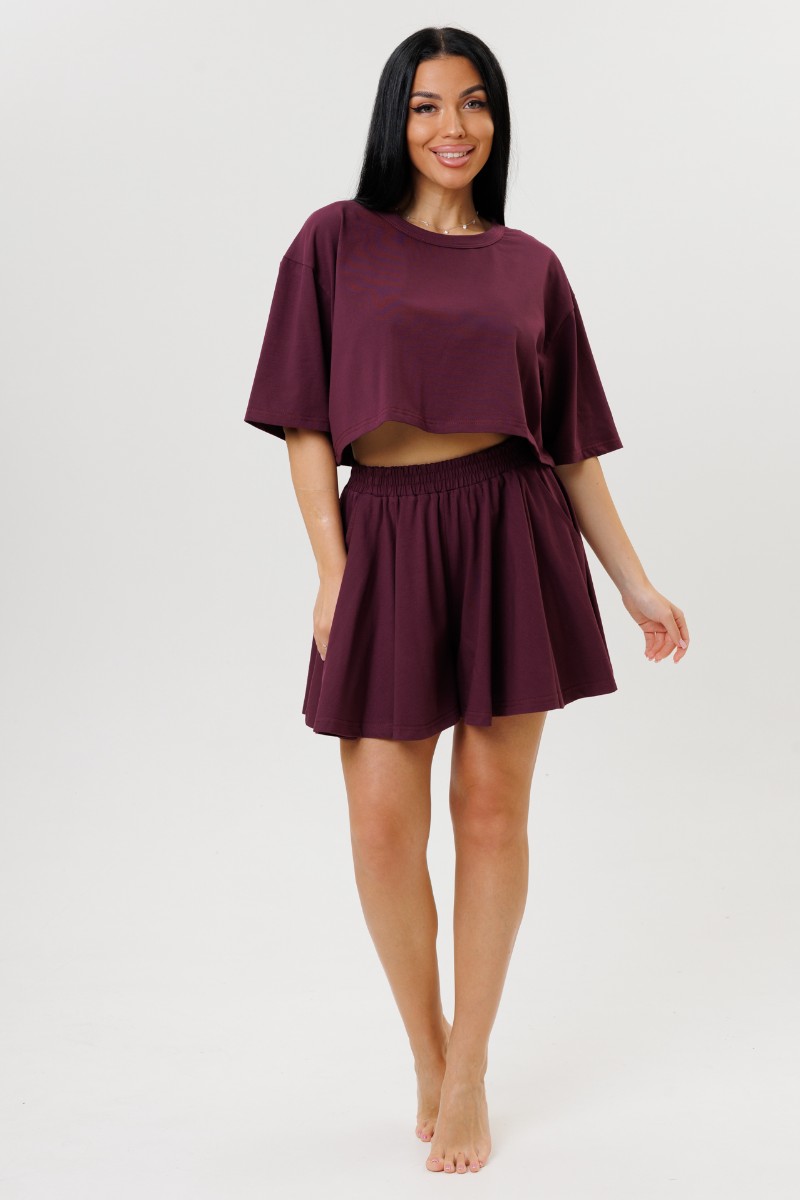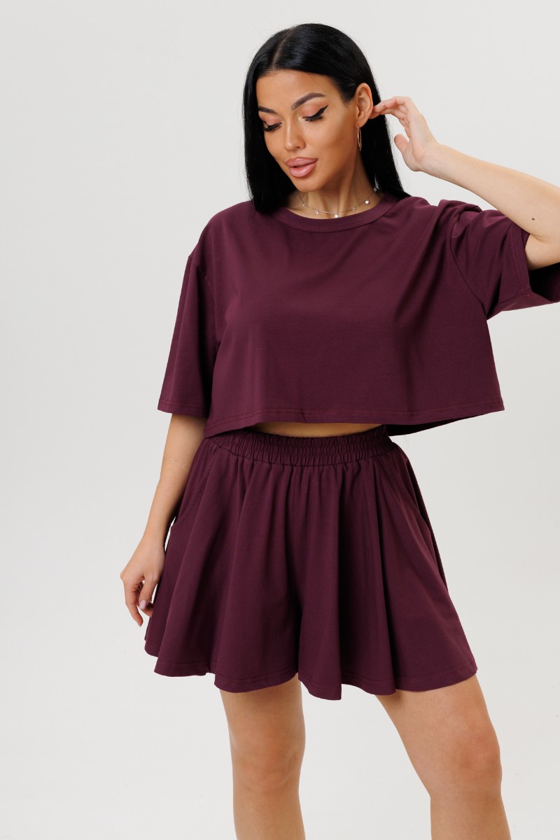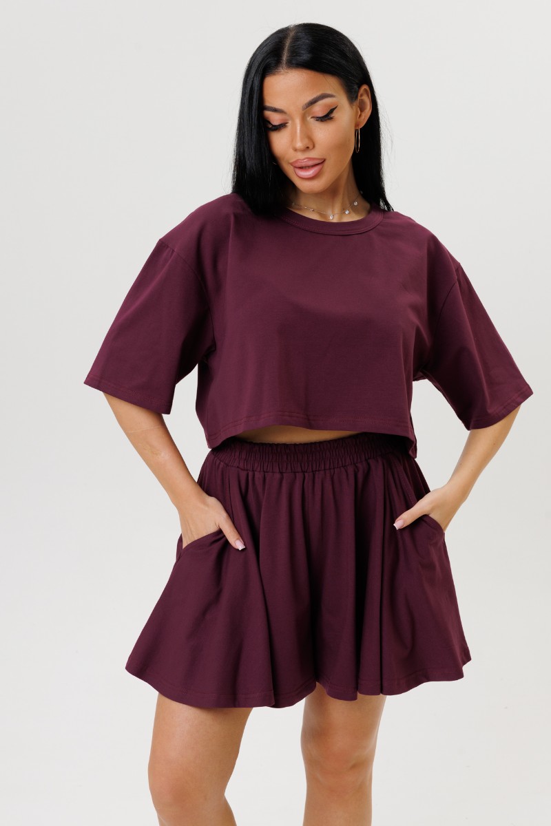 Костюм двойка женский 2218/2 кулирка с лайкрой (р-ры: 44-50) винный
