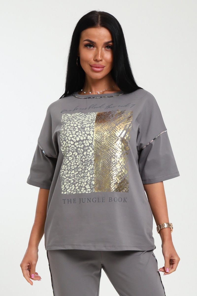 Футболка женская №238 кулирка с лайкрой (р-ры: 46-56) серый