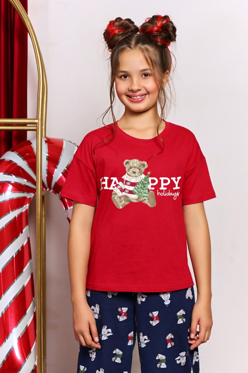 Представляем Вашему вниманию костюм для девочки из трикотажного полотна "кулирка" в комбинации двух видов: гладкокрашеного и набивного с тематическим рисунком, состоящий из футболки и брюк. Футболка из гладкокрашеного полотна, классического покроя, с коротким втачными рукавами, горловиной овальной формы, обработанной втачной планкой и отделочной строчкой. В центре переда - принт, выполненный в технике шелкографии. Брюки из полотна с набивным рисунком длинные, прямые, на притачном поясе с эластичной тесьмой внутри и карманами в боковых швах.