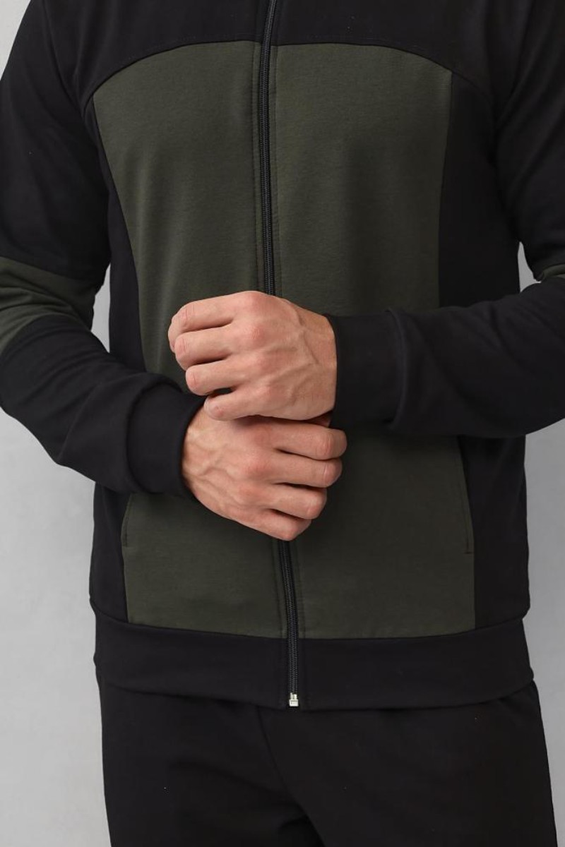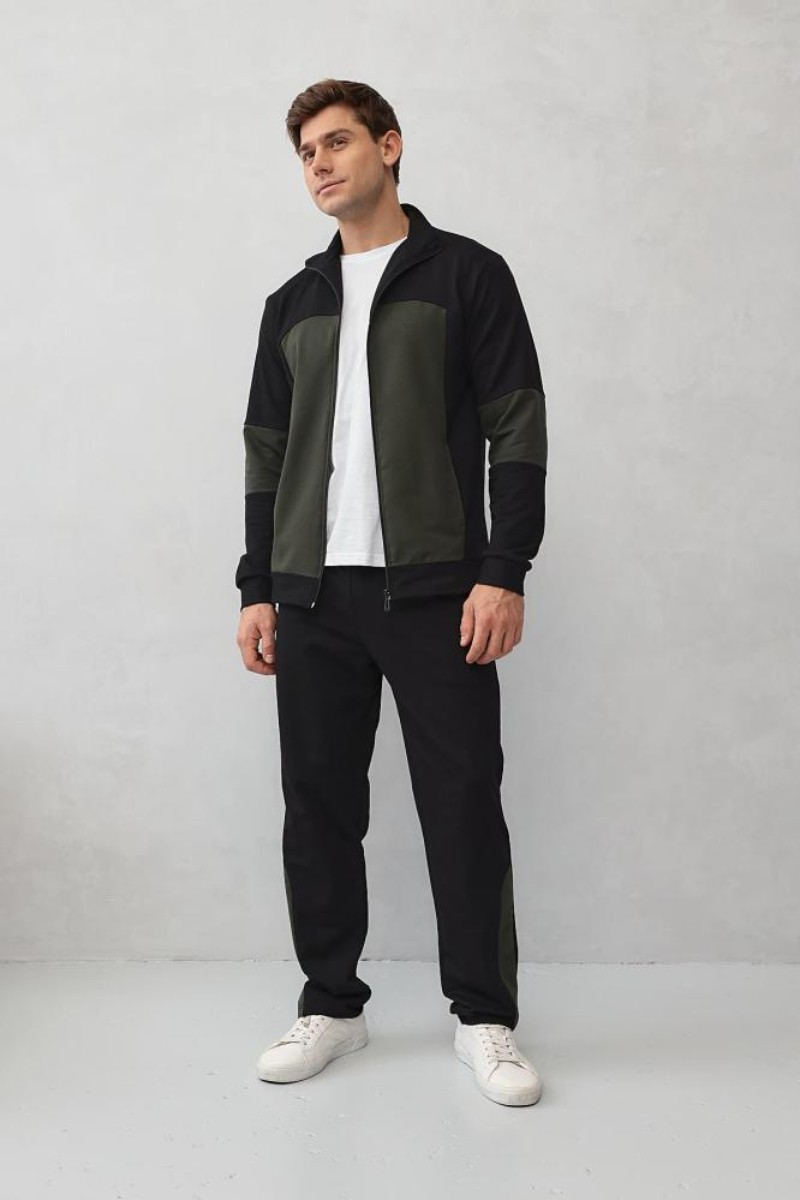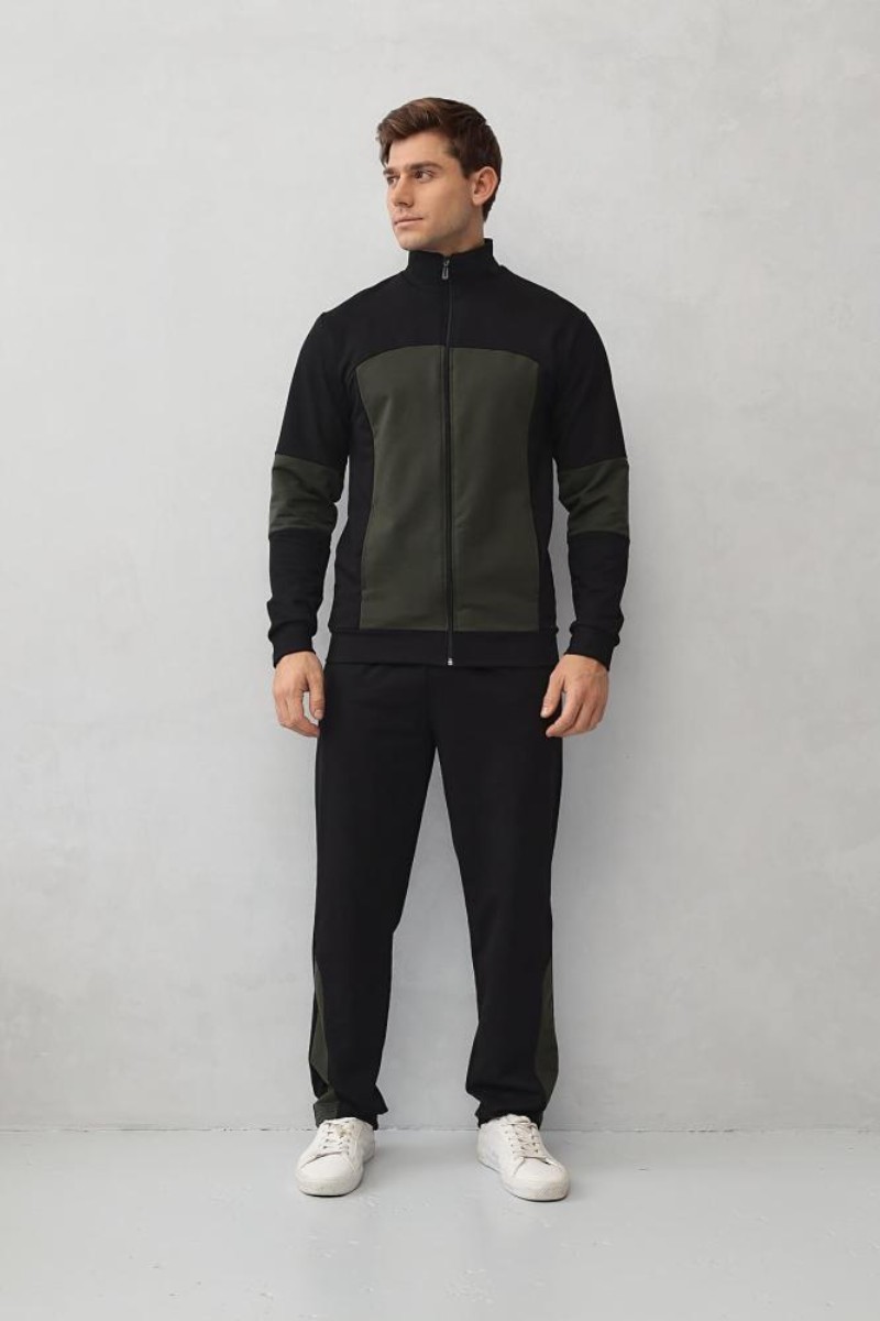 Костюм двойка мужской "Спартак Х" 10387 футер 2-х нитка (р-ры: 48-66) черный-хаки