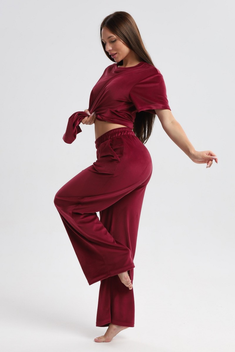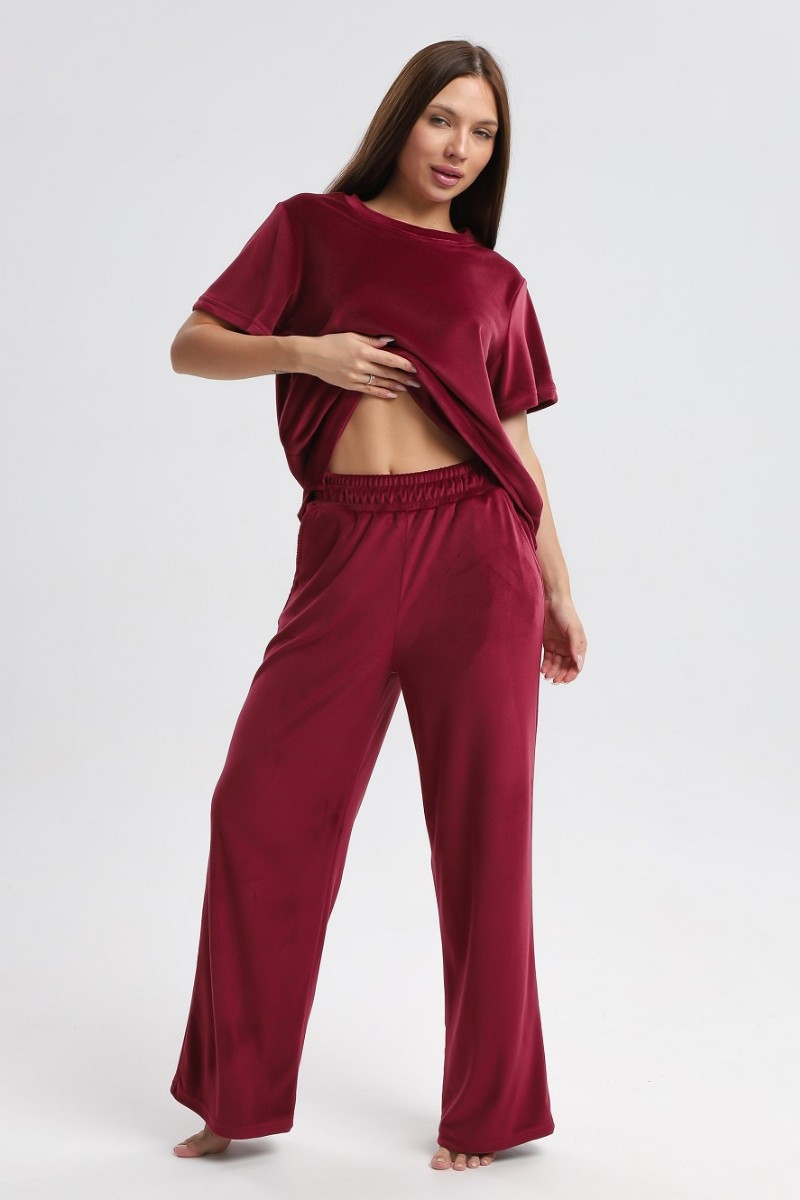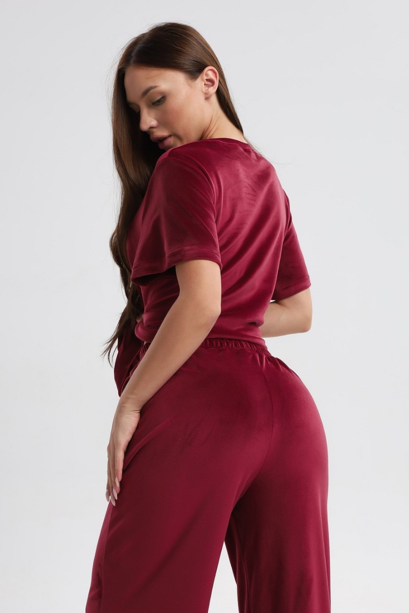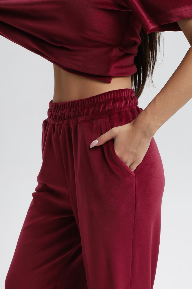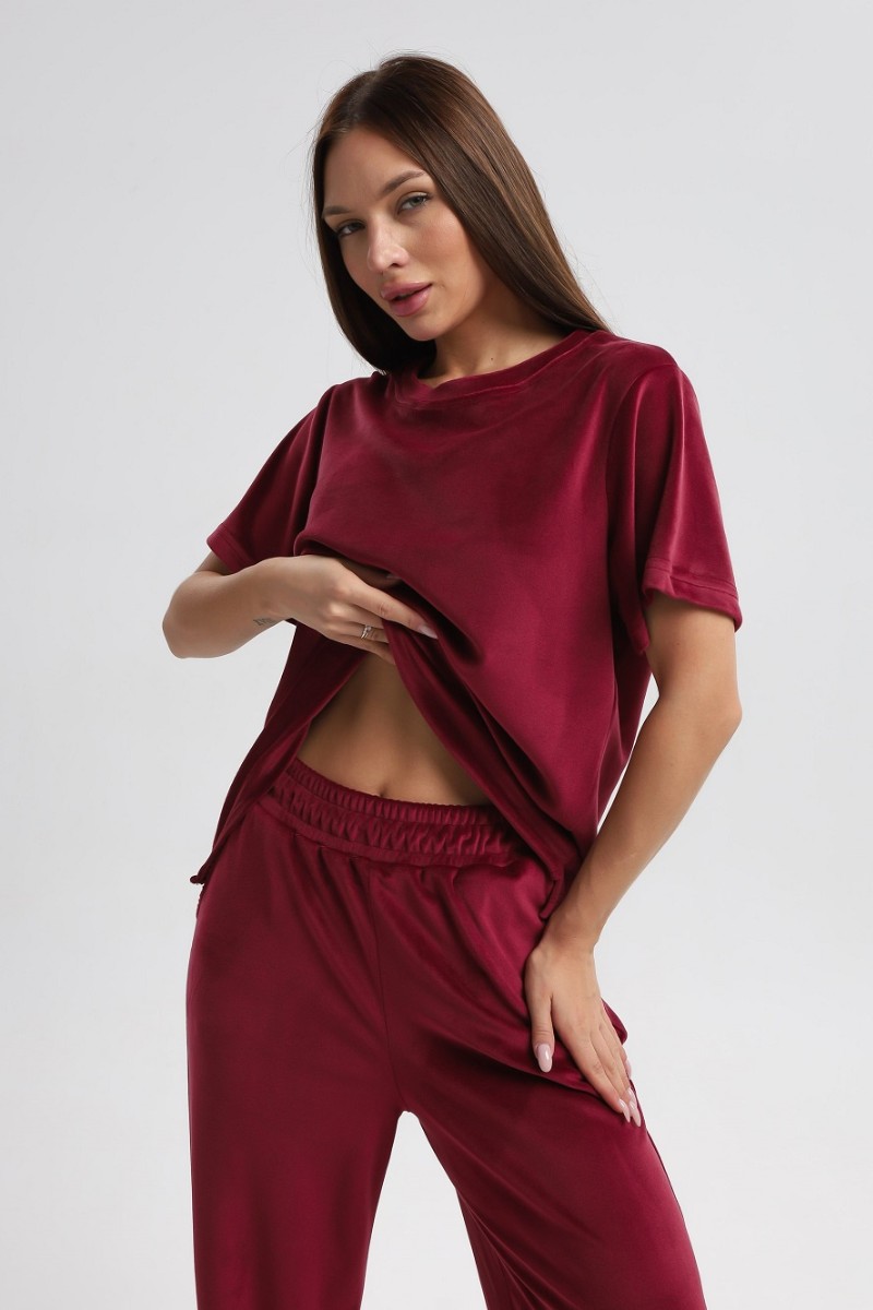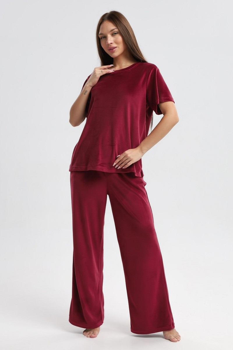 Костюм двойка женский 729 велюр (р-ры: 44-54) бордовый