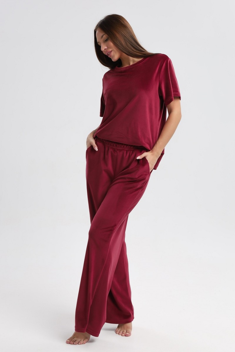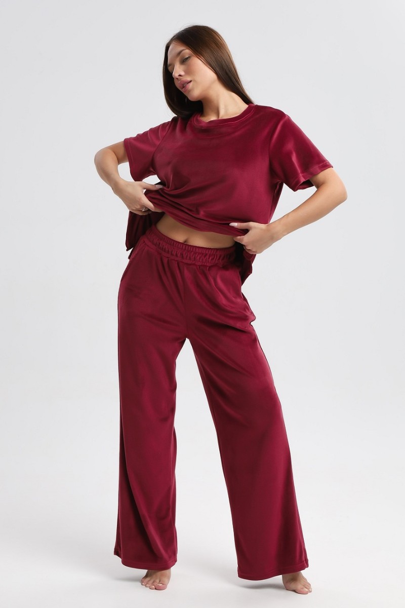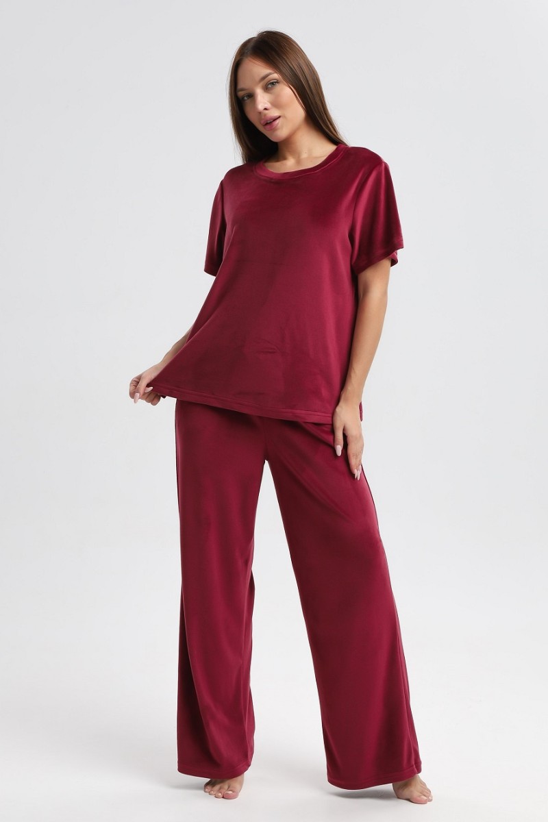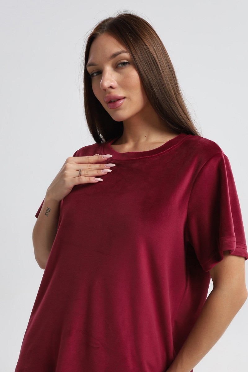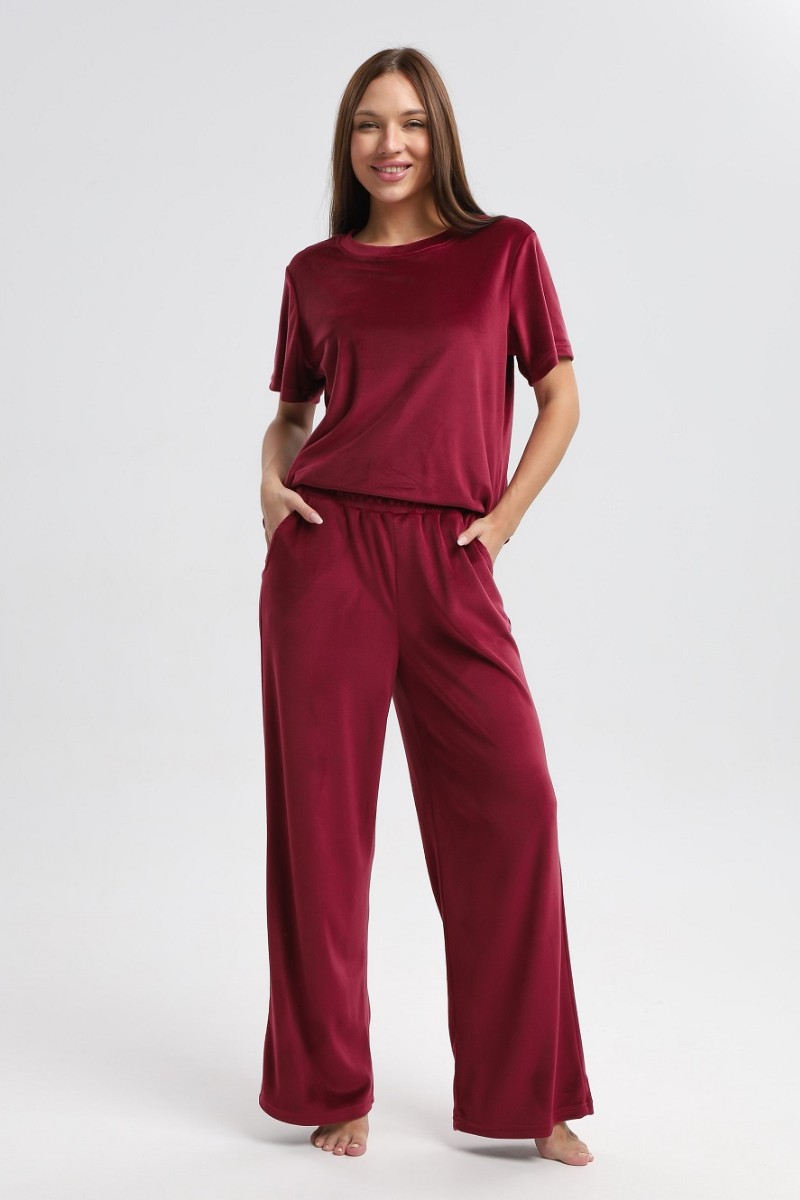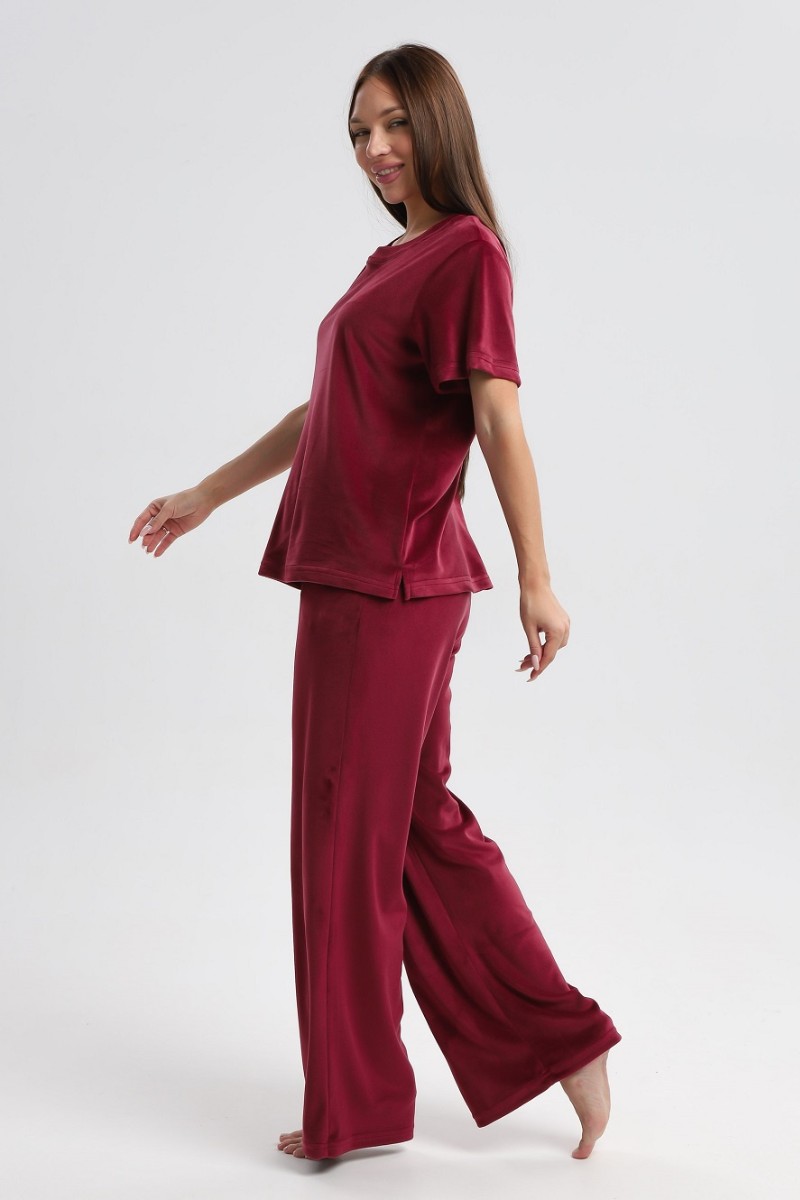 Костюм двойка женский 729 велюр (р-ры: 44-54) бордовый