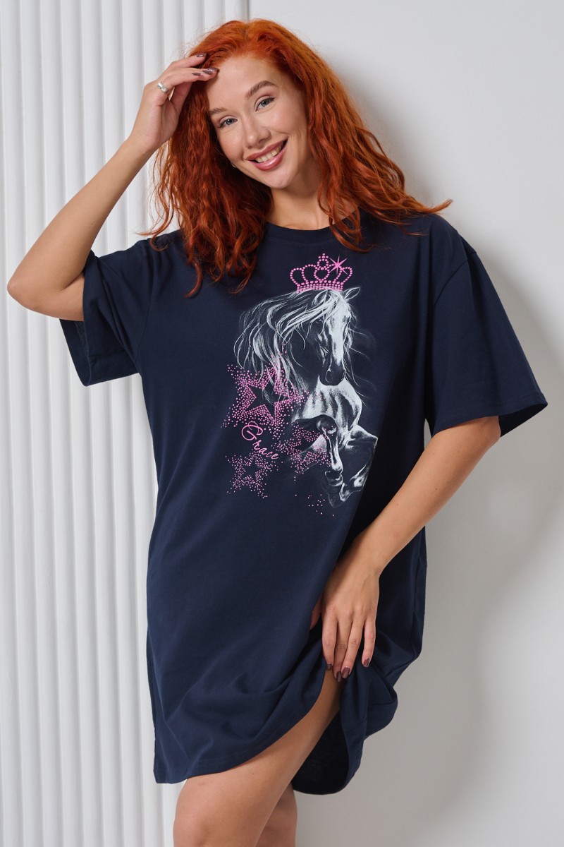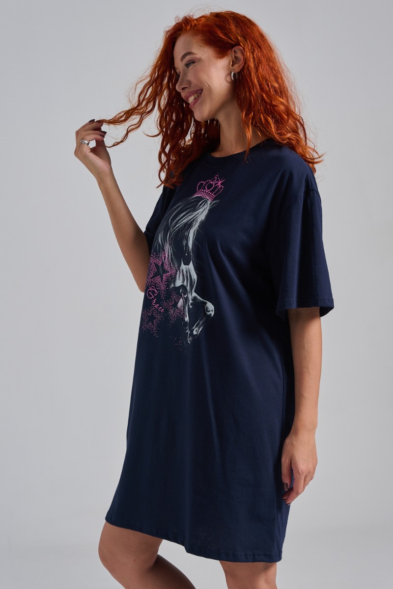 Туника женская №67186 хлопок (р-ры: 44-56) темно-синий