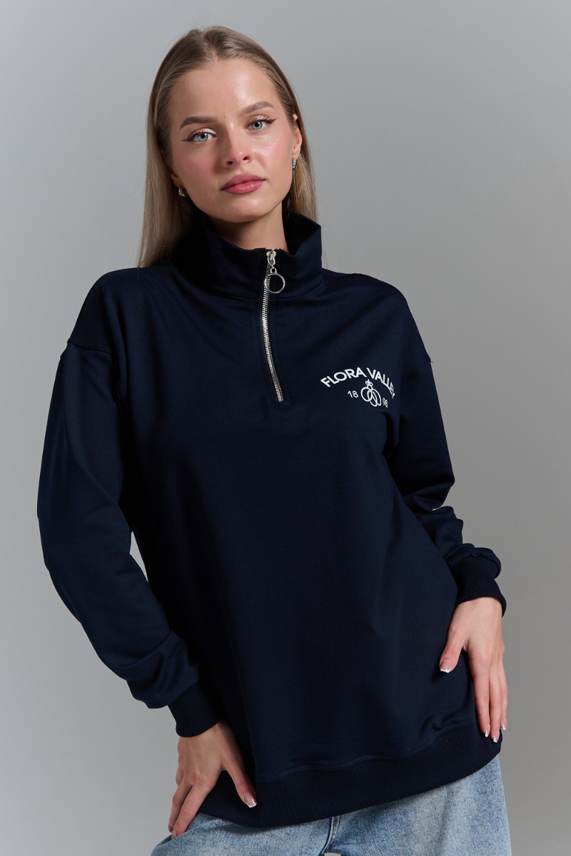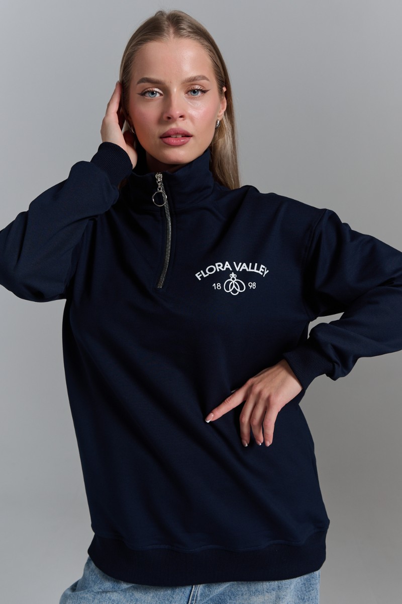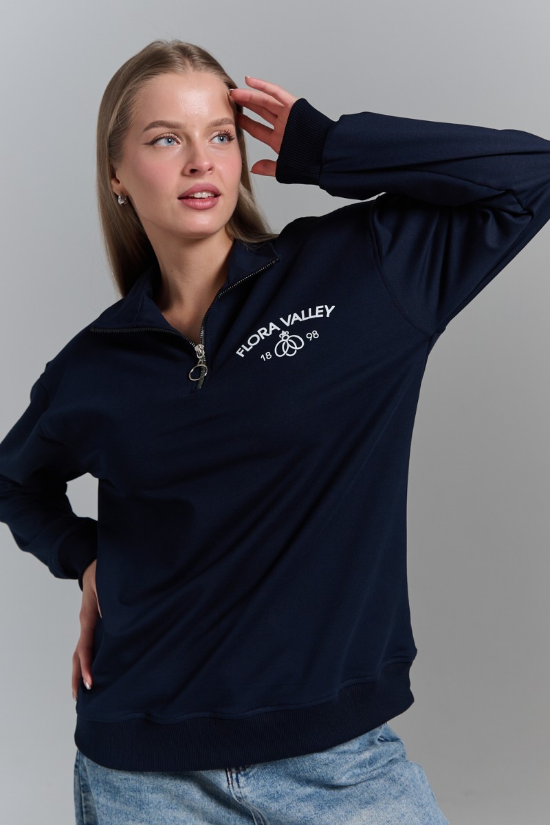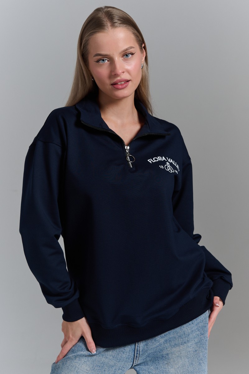 Толстовка женская №7482W футер 2-х нитка (р-ры: 42-50) темно-синий