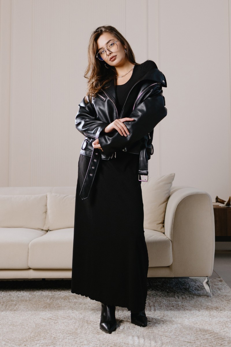 Платье женское ПТЛ-343 9024 лапша (последний размер) черный 50-52,54-56