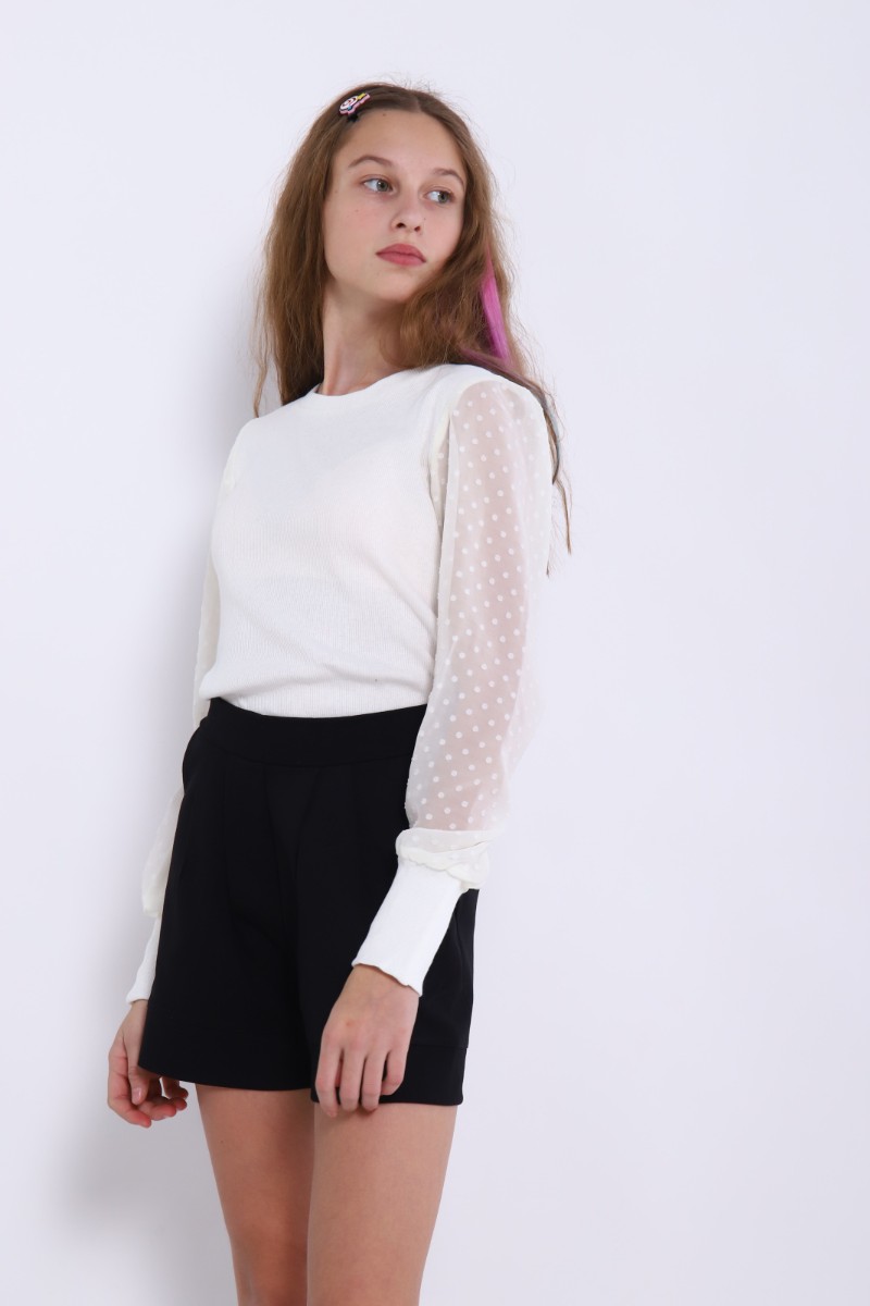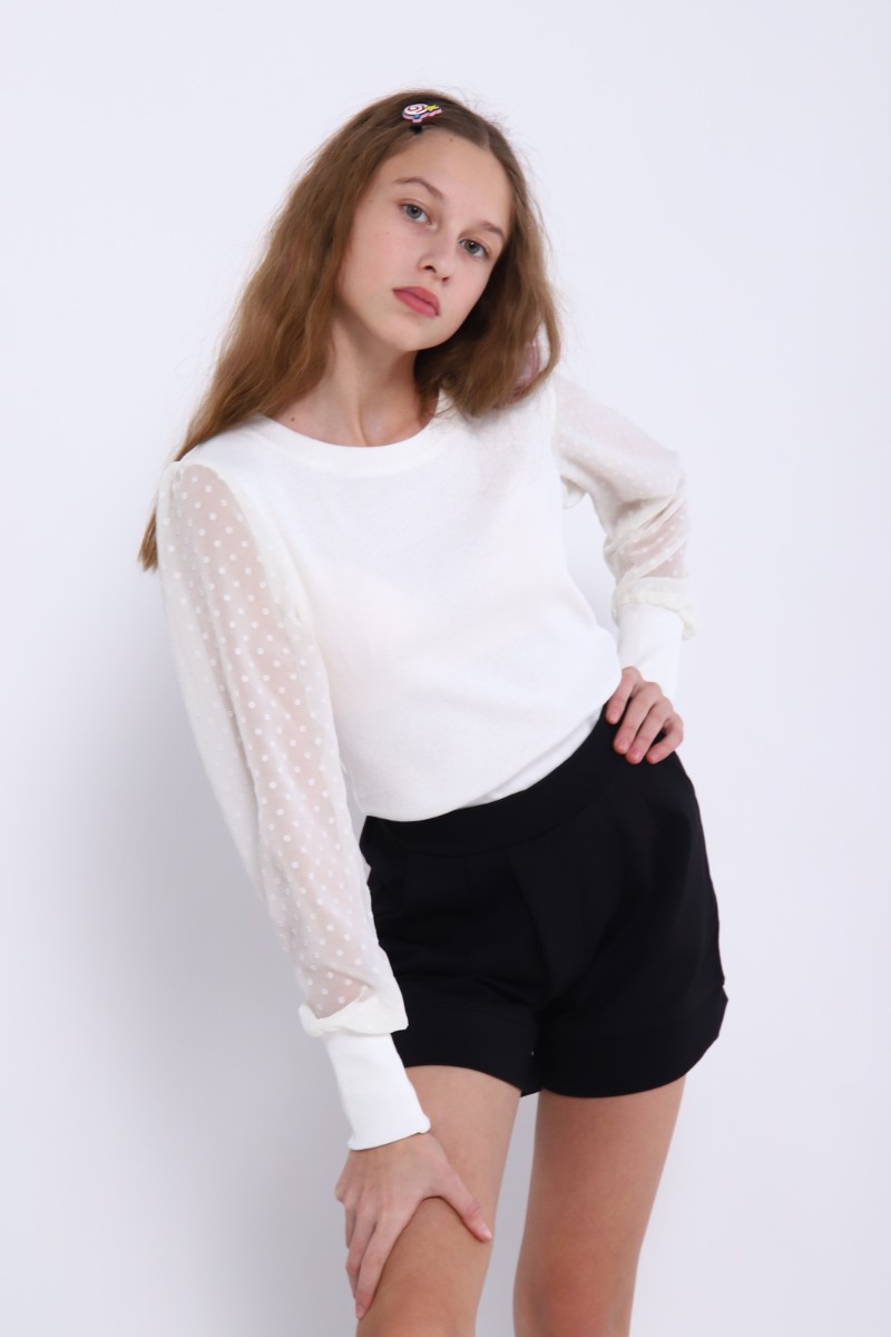 Представляем Вашему вниманию подростковый лонгслив для девочки. Детская блузка сшита из легкого трикотажа с хлопком, ткань приятная к телу. Однотонный джемпер с длинными прозрачными рукавами из кружева, круглой горловиной, с манжетами. Посадка кофты на девочку прямого силуэта очень идеальная. Водолазку можно сочетать со многими предметами гардероба, создавая стильные современные образы. Кофточку отлично дополнят шорты на девочку, юбки и лосины для подростка, кюлоты - укороченные брючки, также классические брюки, кардиган, джемпер, школьный пиджак так же дополнит образ с этой блузкой, хорошо смотрятся в сочетании с сарафанами. Модный свитшот практичен, подойдет для повседневной носки, прогулок, официальных встреч, школы, экскурсий, кружков, хорошая идея для подарка девочке на любой праздник. Рекомендуем на торжественные события, такие как выпускной в школе, праздники, дни рождения. Облегченная кофта для тех, кто ценит удобство трикотажных вещей и любит все красивое! Стремимся к лучшим нарядам для вашего гардероба.