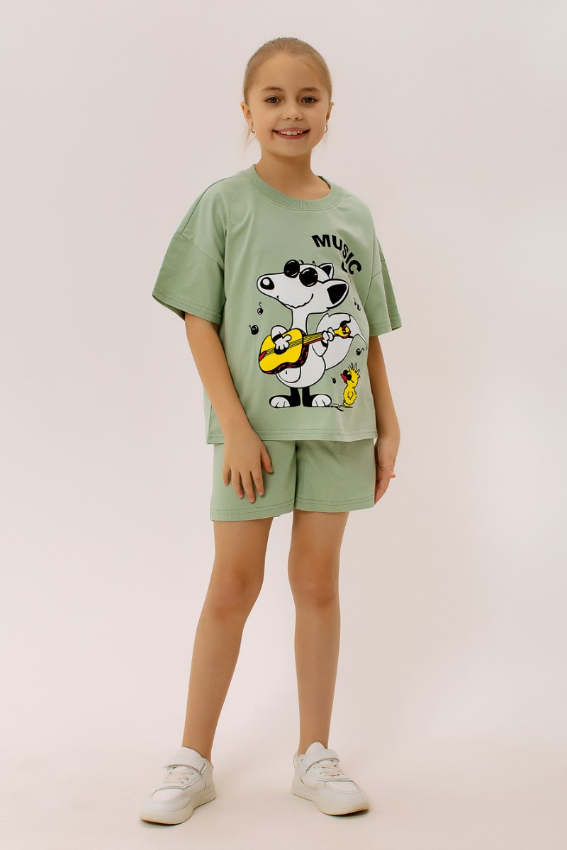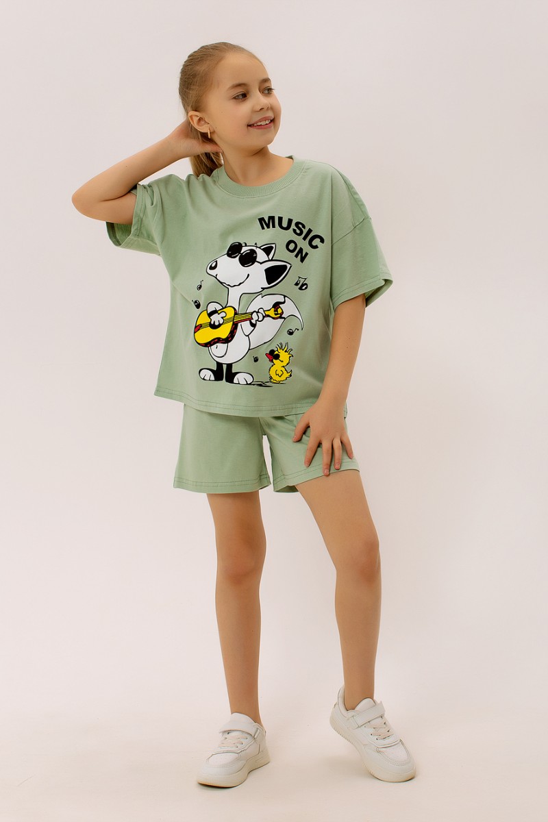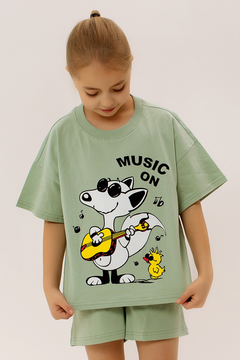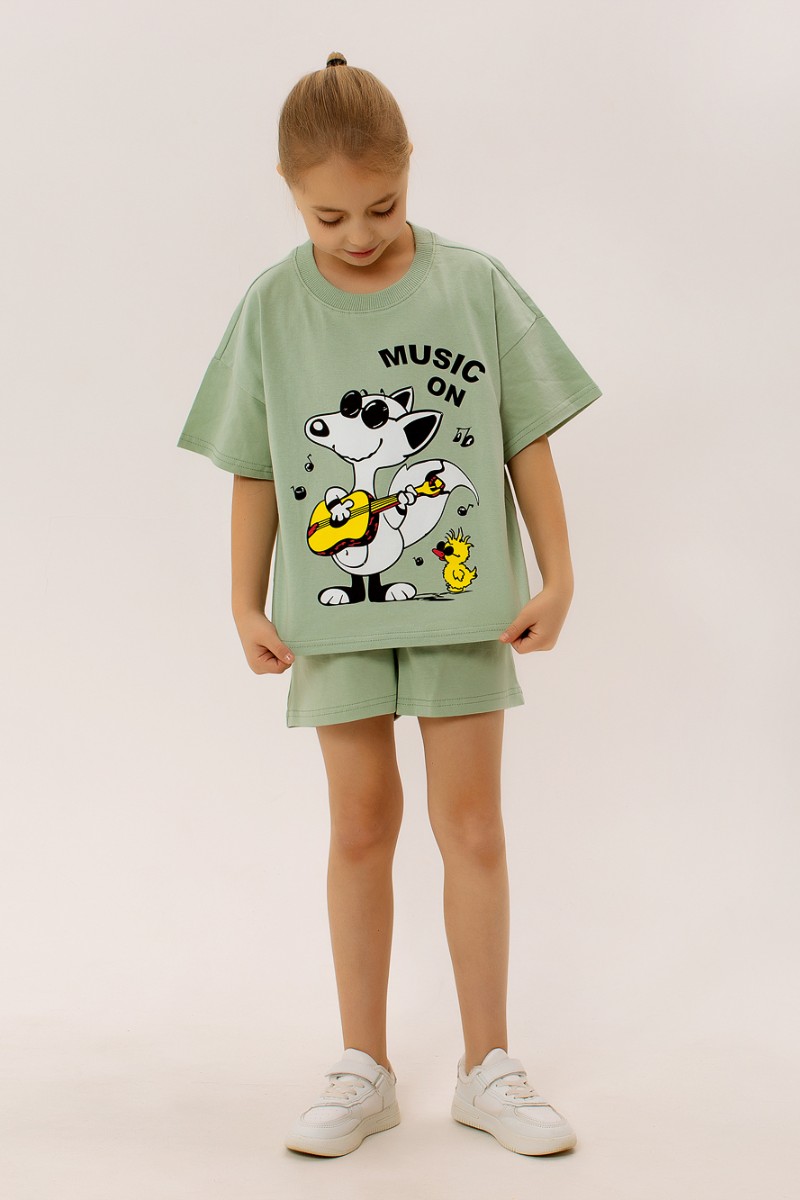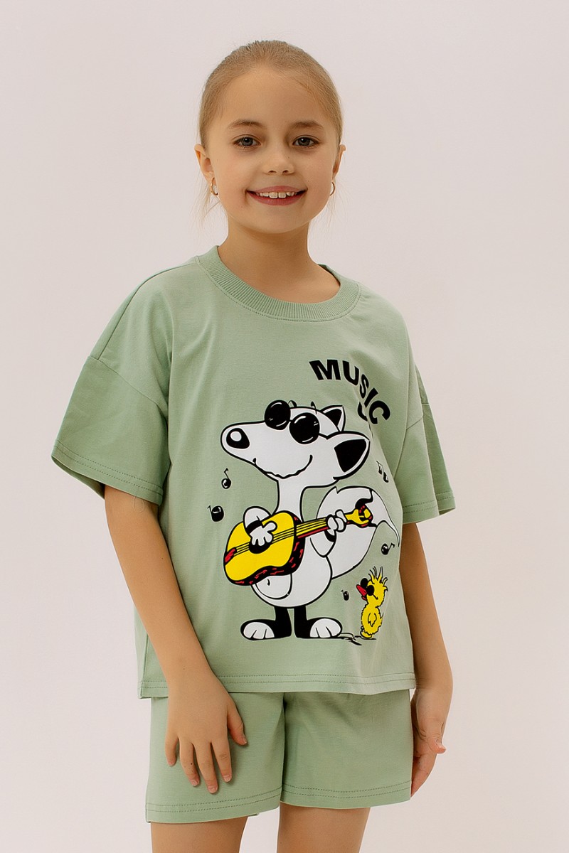 Костюм двойка детский "Комиксы" ФЛ-23 кулирка (последний размер) светлый хаки 140