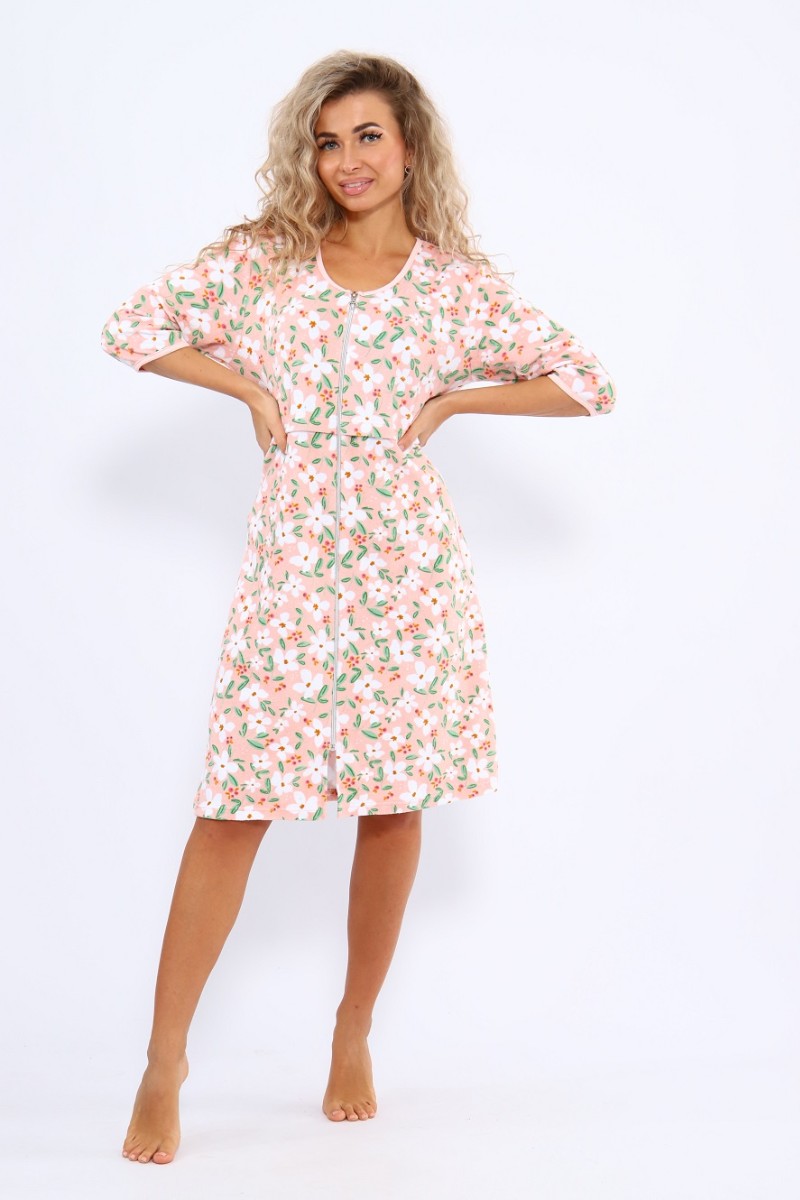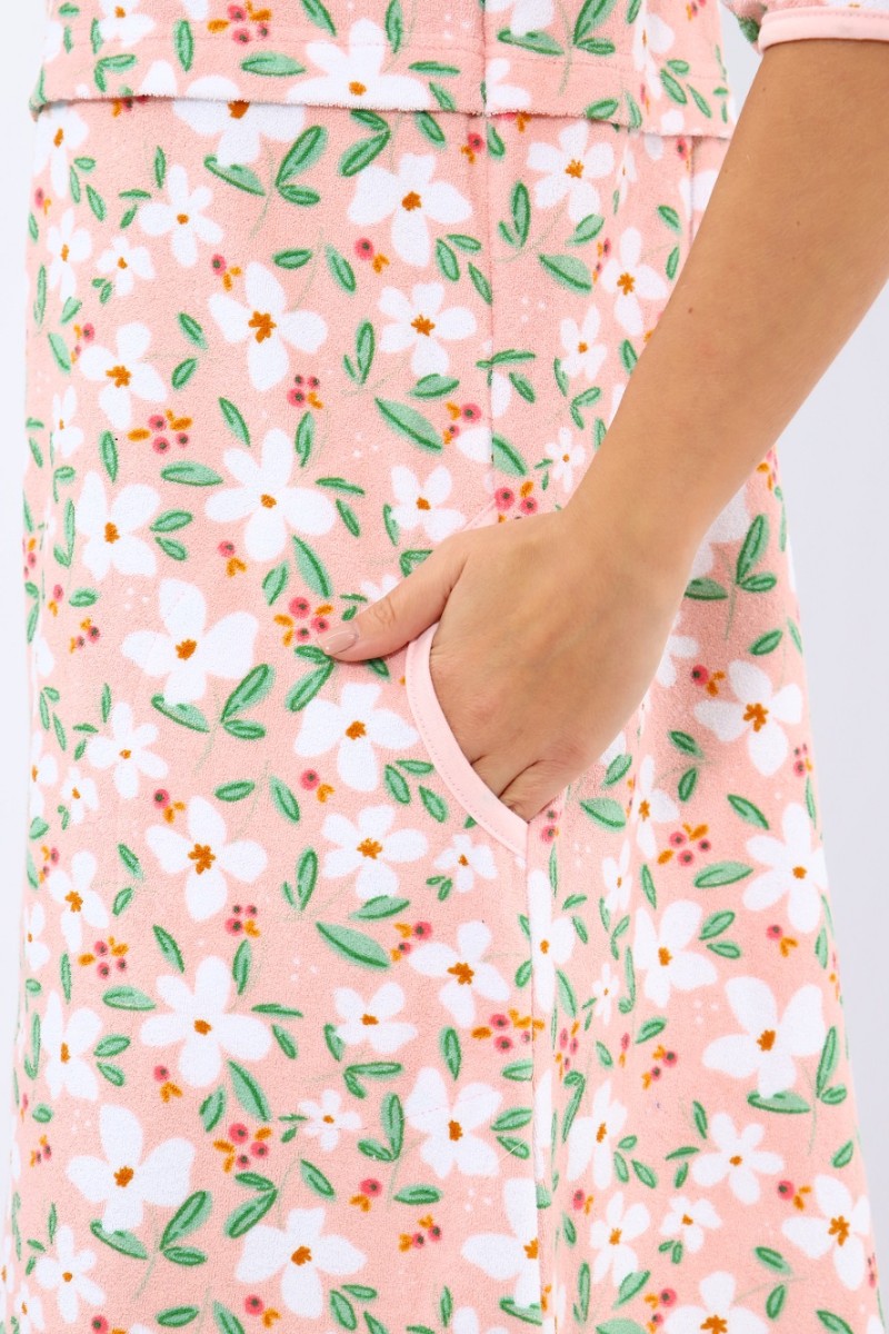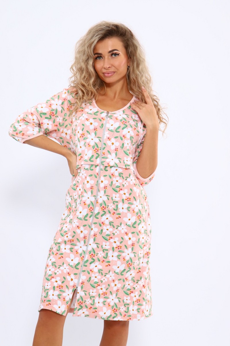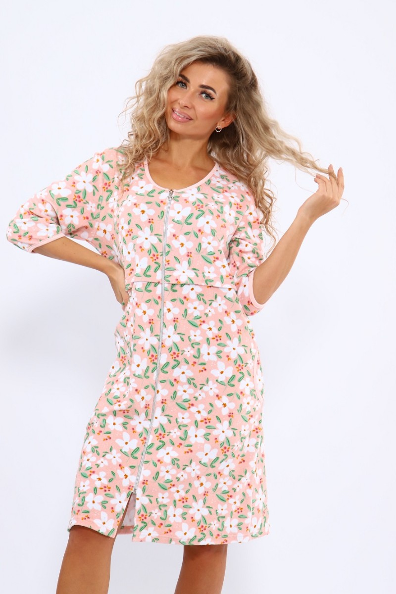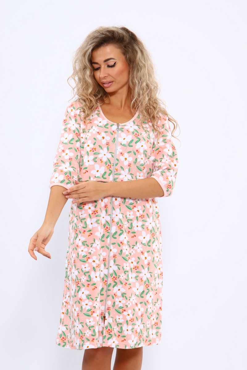 Халат женский 318 махра (последний размер) персиковый-белый-ромашка 50-52,54-56