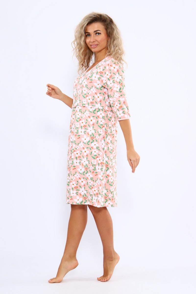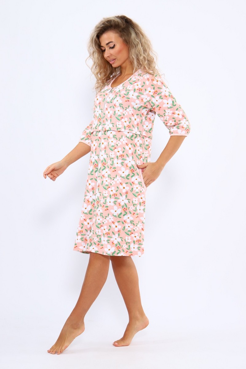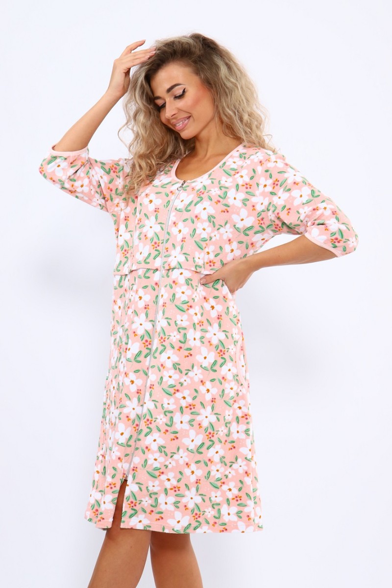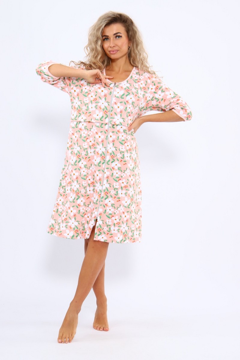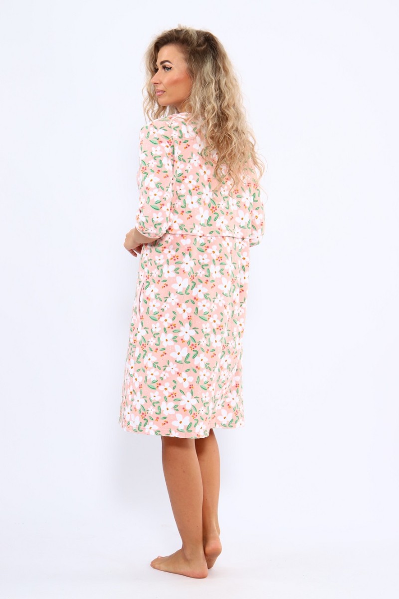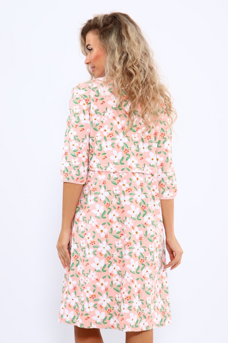 Халат женский 318 махра (последний размер) персиковый-белый-ромашка 50-52,54-56