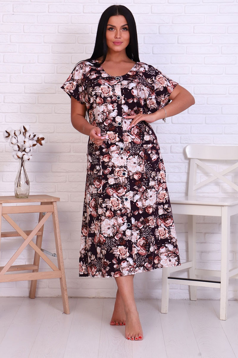 Халат женский 001 кулирка (последний размер) коричневый пион 54-56