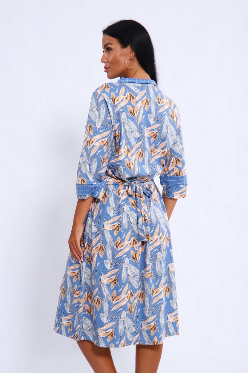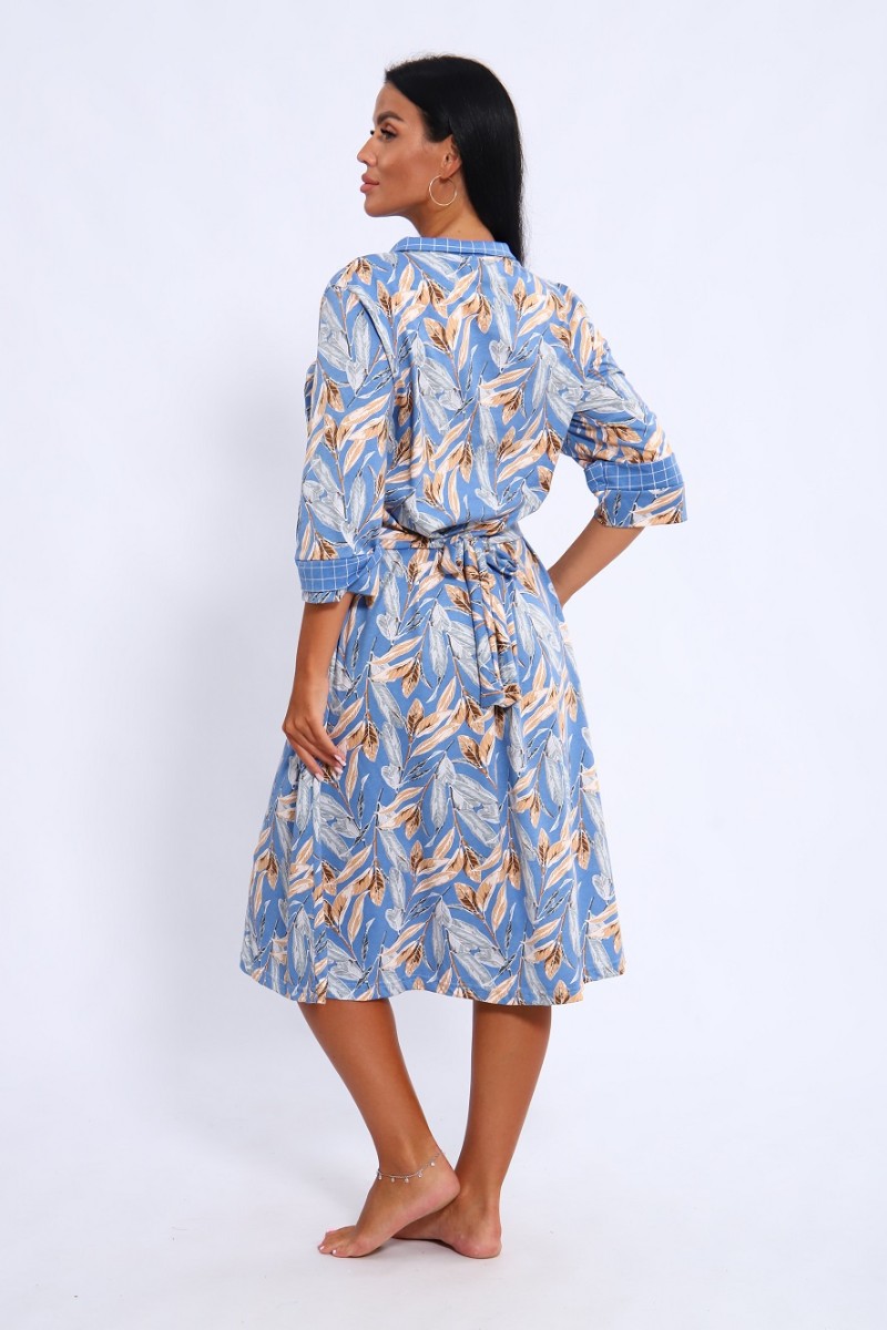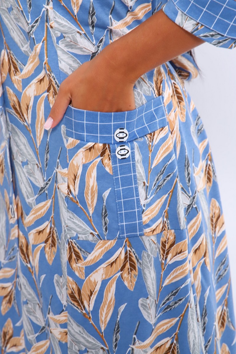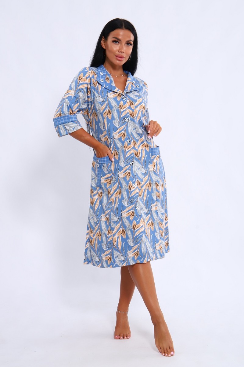 Халат женский 561 кулирка (последний размер) голубой-белый-листья 52-54