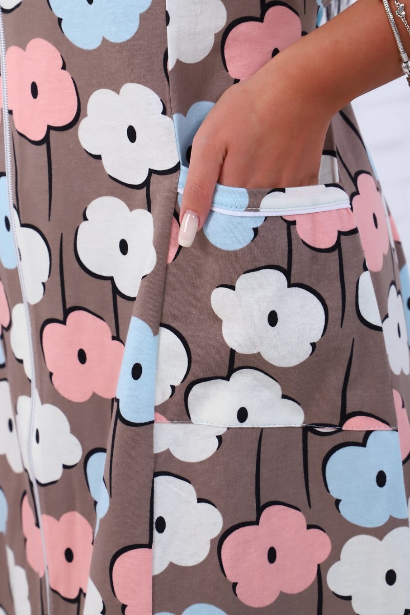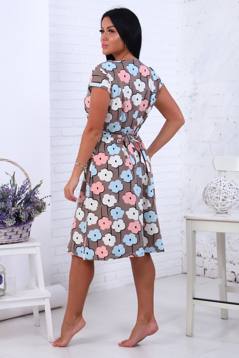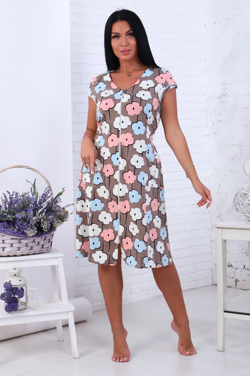 Халат женский 021 кулирка (последний размер) коричневый-белый-цветы 48-50,54-56,56-58,60-62