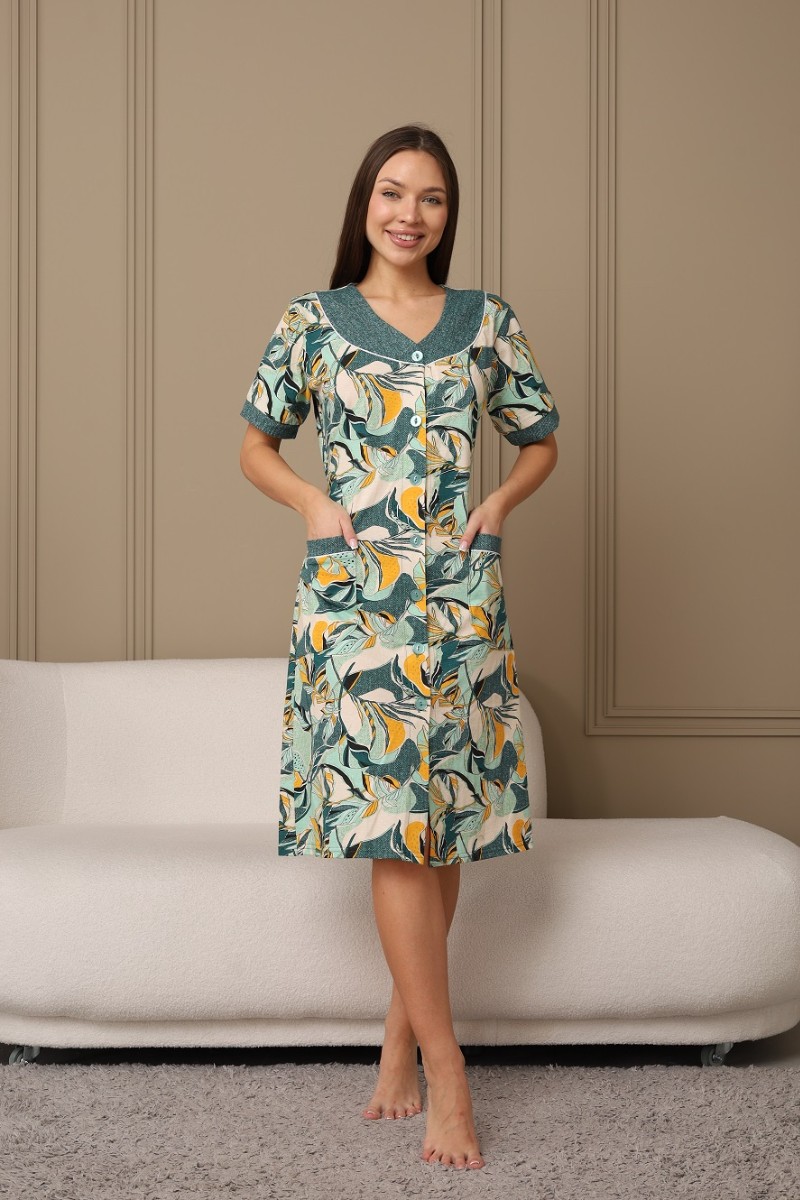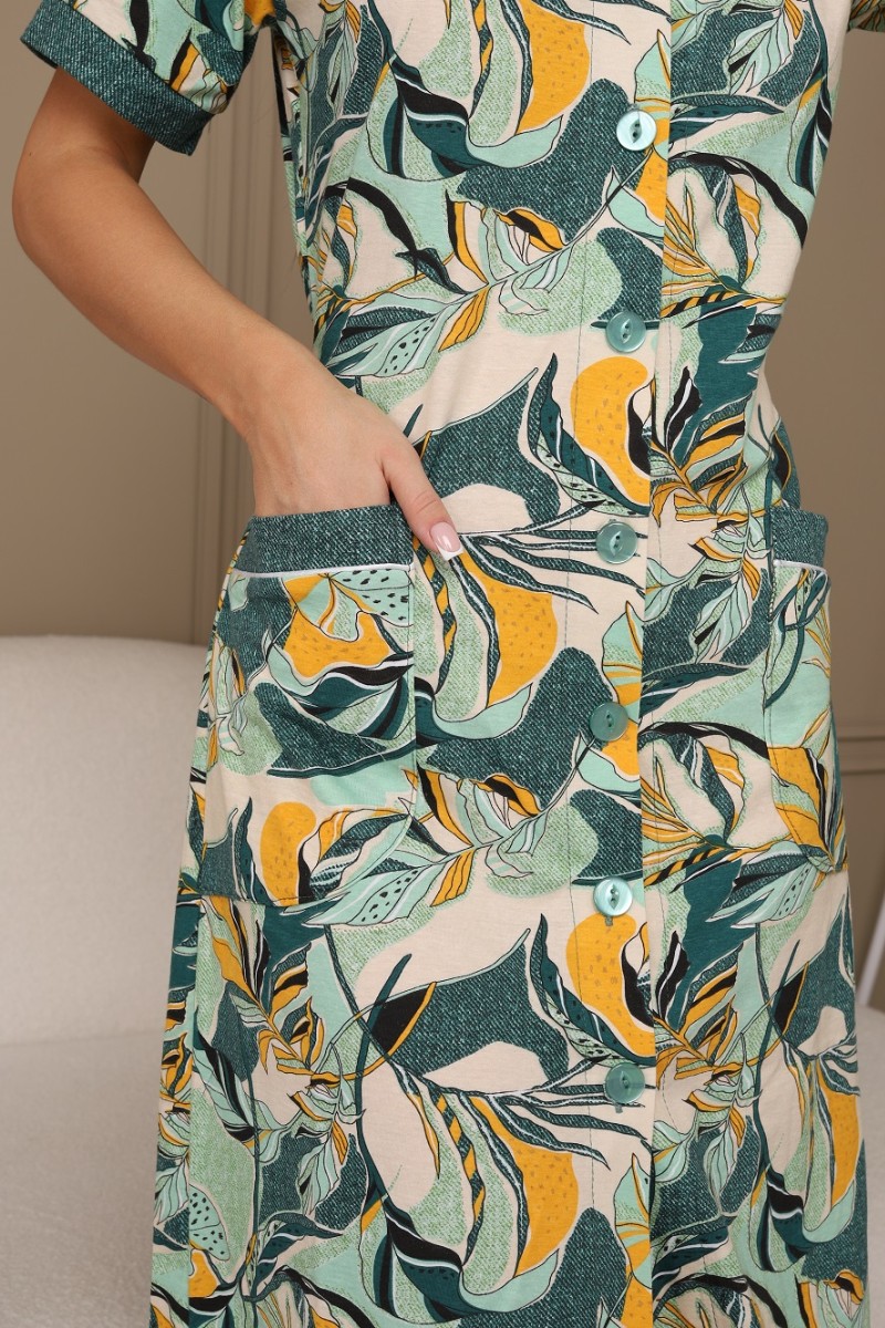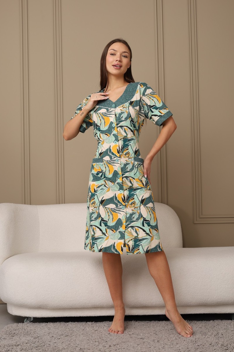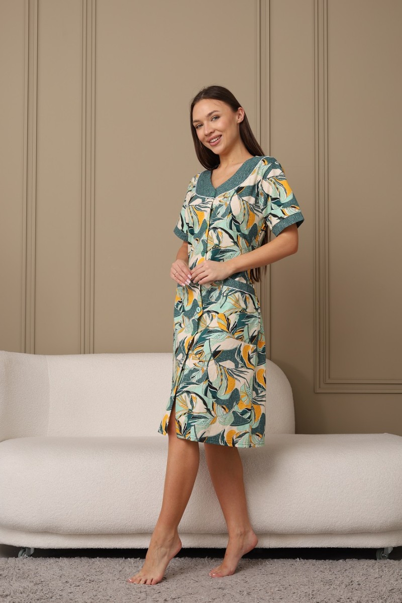 Халат женский 084 кулирка (последний размер) зеленый-бежевый-листья 54-56