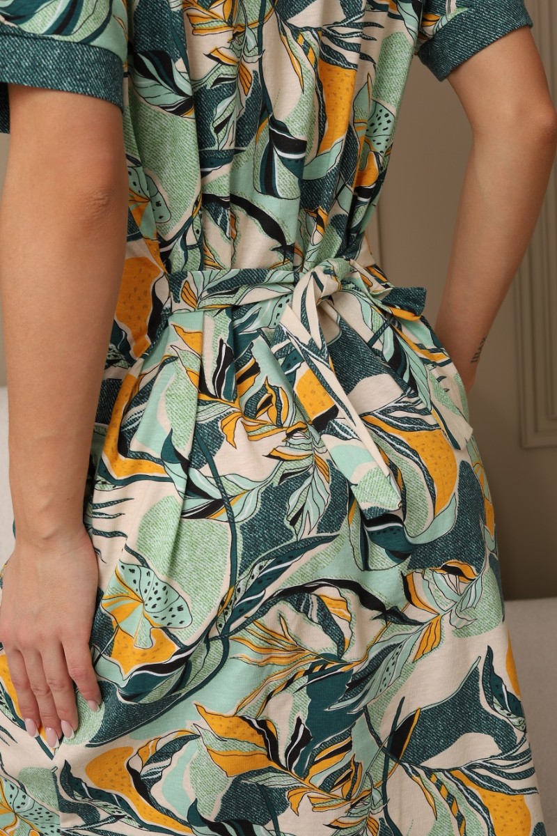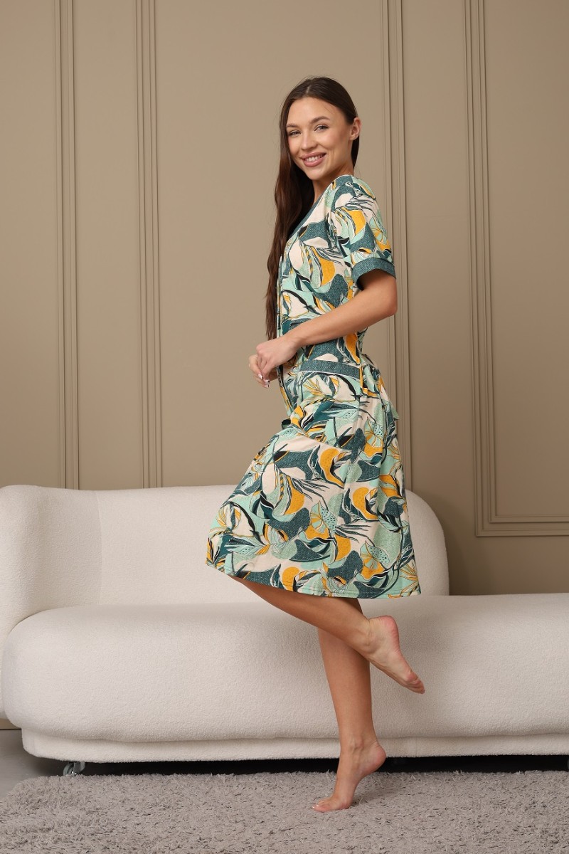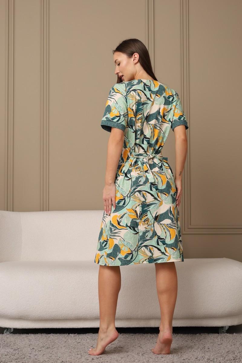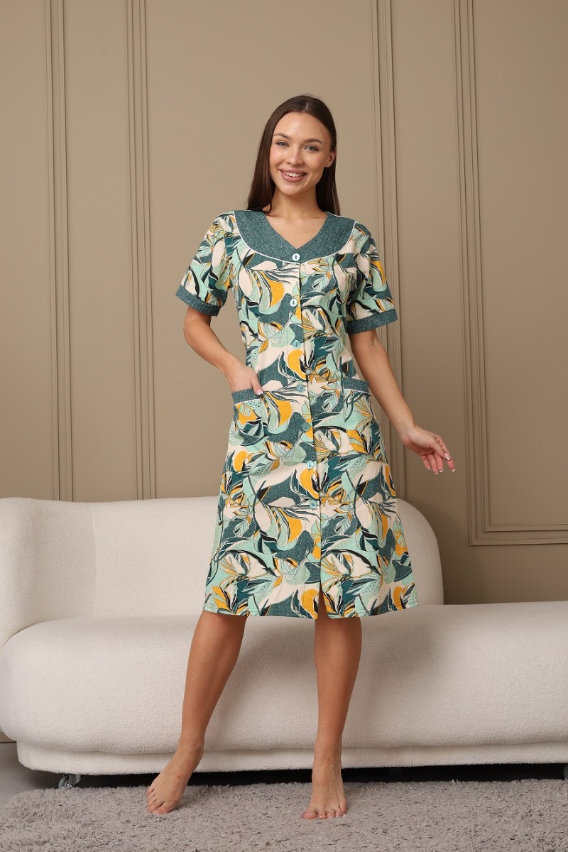 Халат женский 084 кулирка (последний размер) зеленый-бежевый-листья 54-56