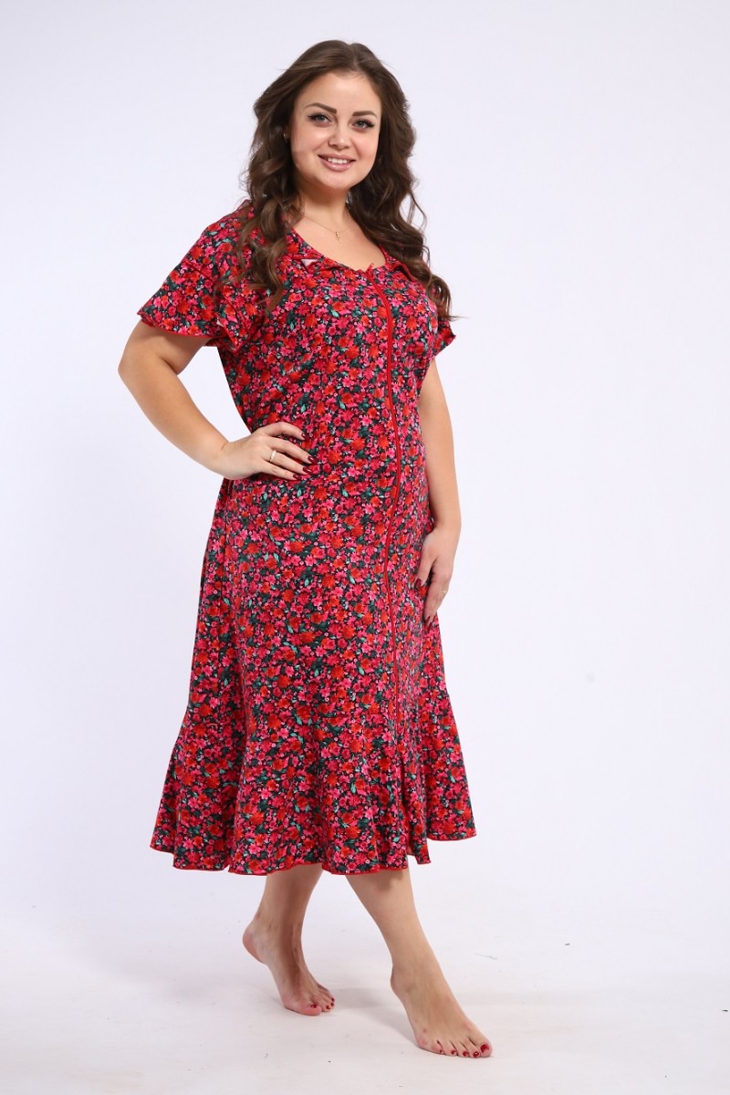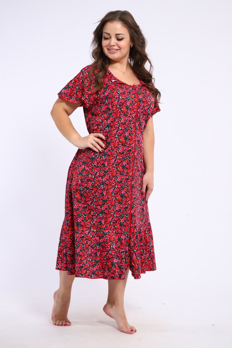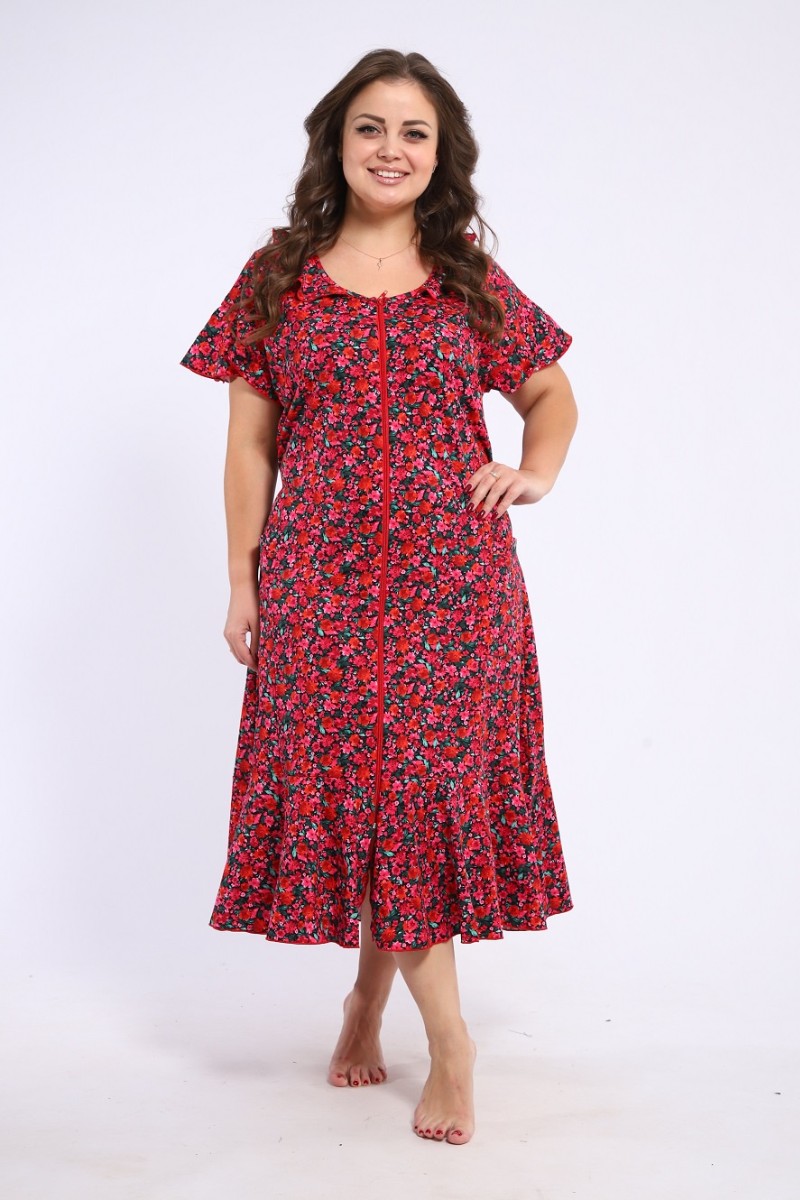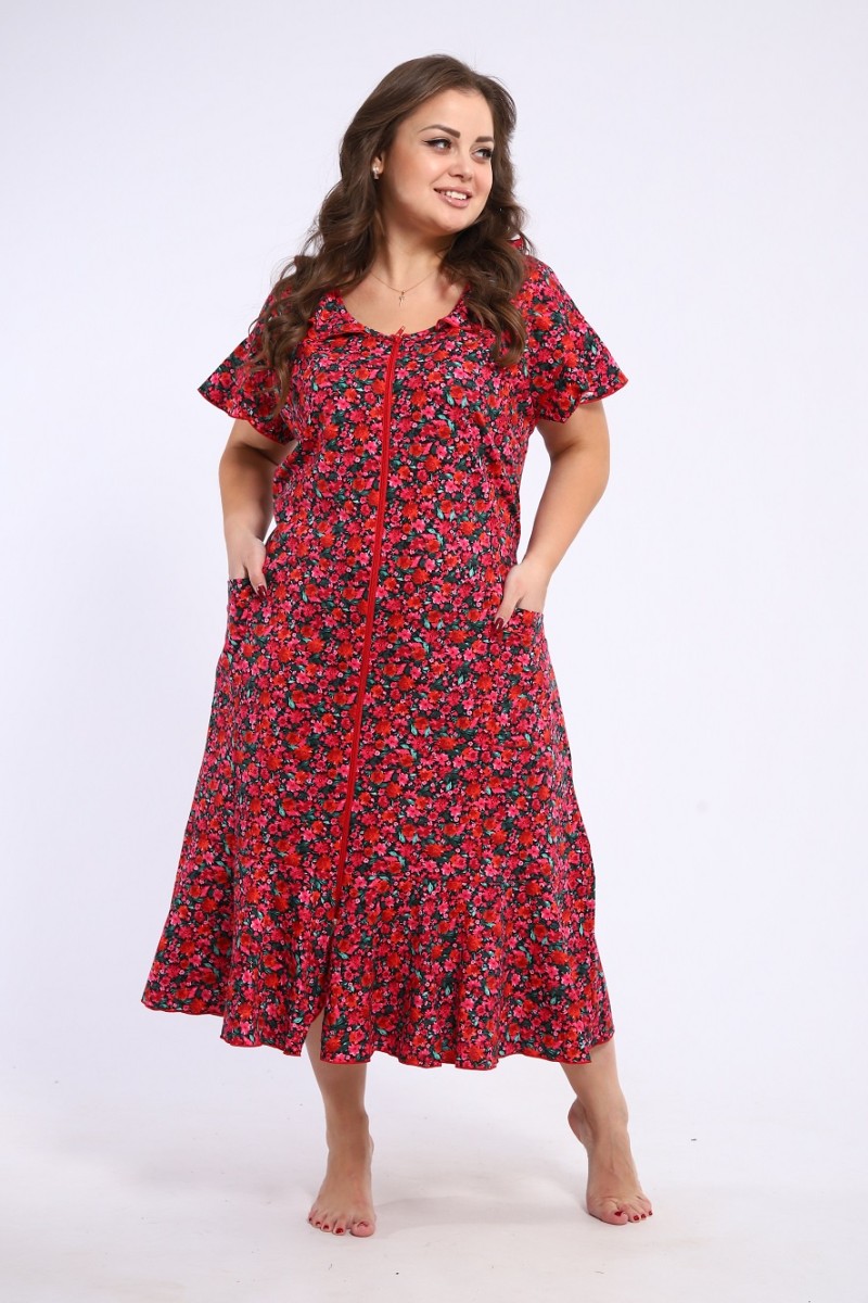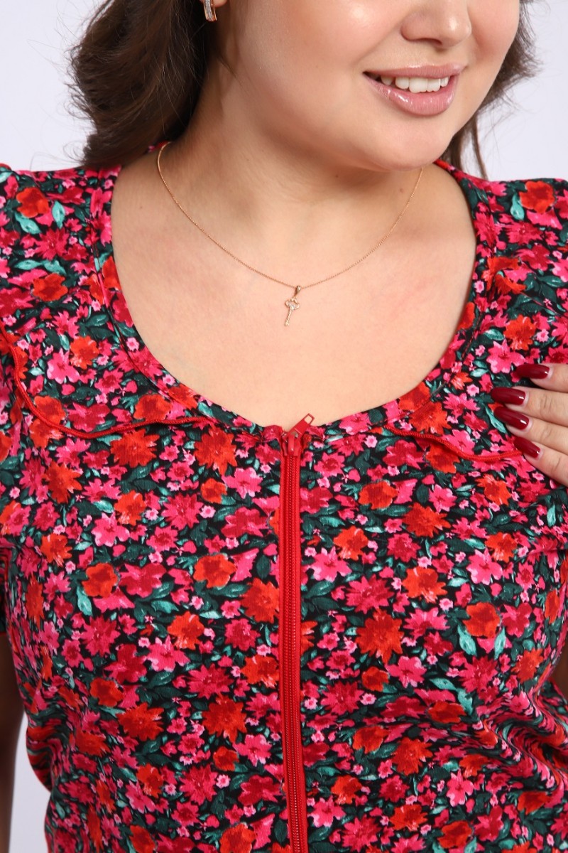 Халат женский 020 кулирка (последний размер) зеленый-красный-цветы 64-66