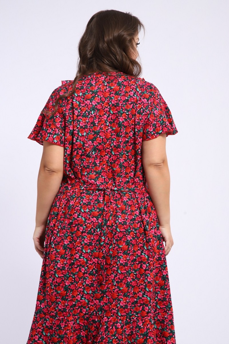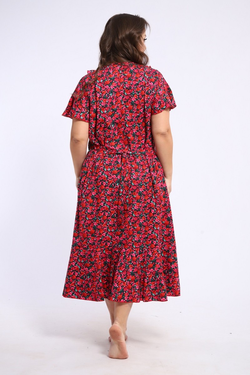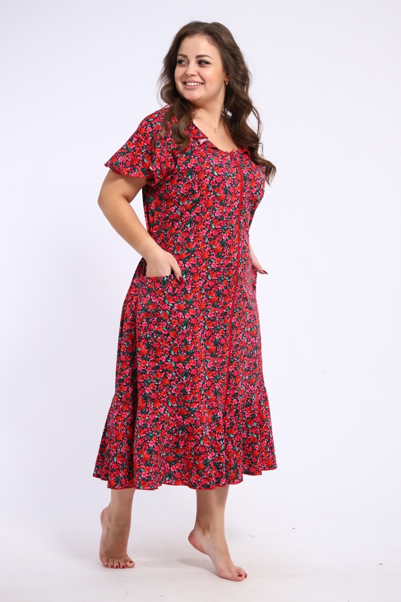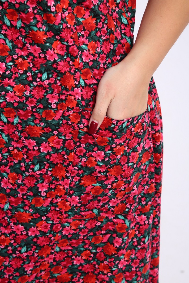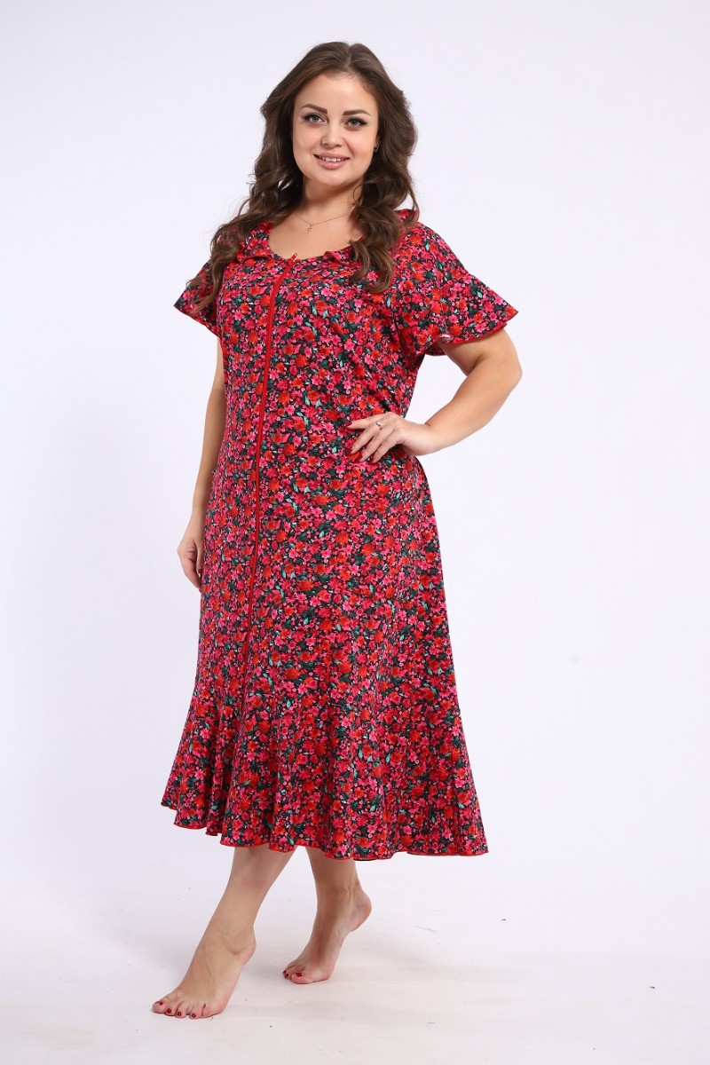 Халат женский 020 кулирка (последний размер) зеленый-красный-цветы 64-66