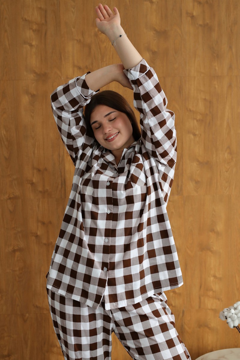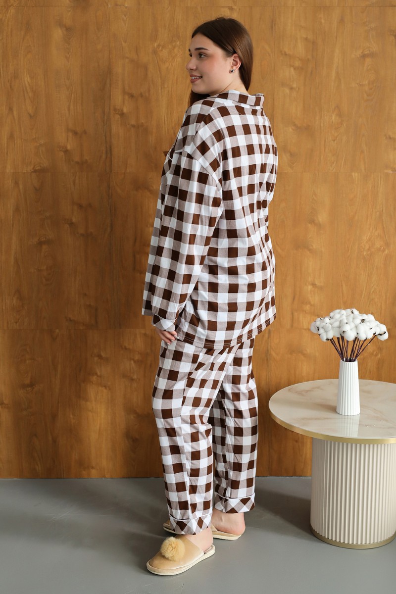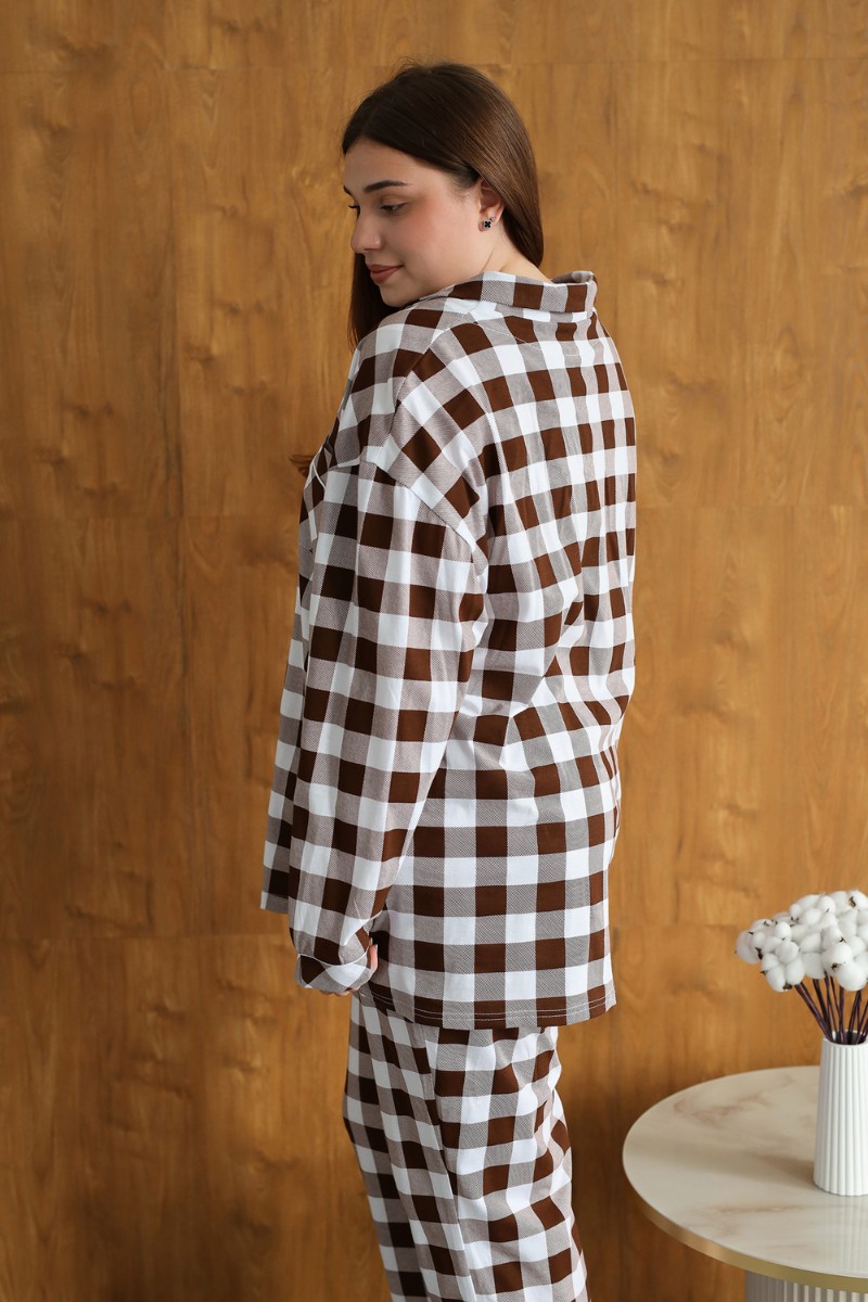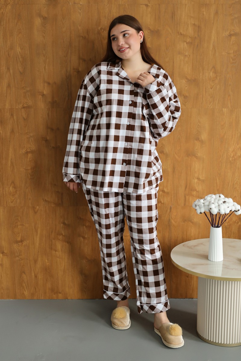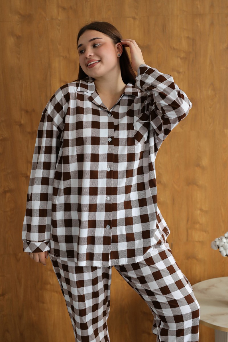 Представляем Вашему вниманию уютную и стильную пижаму, созданную специально для женщин, ценящих комфорт и элегантность. Эта пижама станет идеальным выбором для холодных зимних вечеров, обеспечивая вам тепло и уют в любое время суток. Она сшита из 100% хлопка, что гарантирует мягкость, приятную тактильность и комфорт при ношении. Модель выполнена в классическом клетчатом дизайне, который никогда не выходит из моды. Пижама состоит из стильной рубашки с длинными рукавами на пуговицах и просторных брюк с высокой посадкой, обеспечивая свободу движений и максимальный комфорт. Благодаря свободному крою и мягкой ткани, эта пижама идеально подходит для женщин больших размеров, обеспечивая им комфорт и уверенность. Она станет отличным подарком на Рождество для любимых женщин, а также прекрасным вариантом для ношения в больнице или дома.
