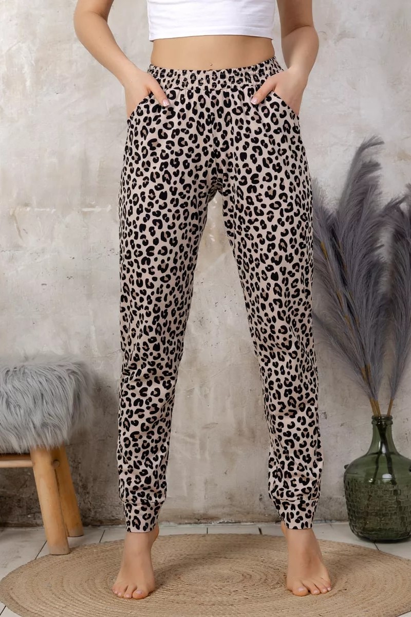 Брюки женские БП-162 кулирка (р-ры: 42-56) леопард беж