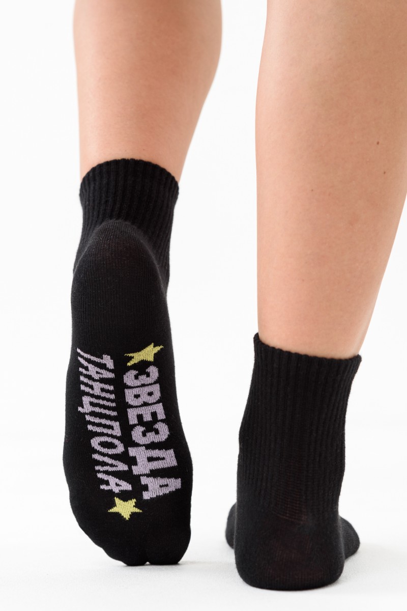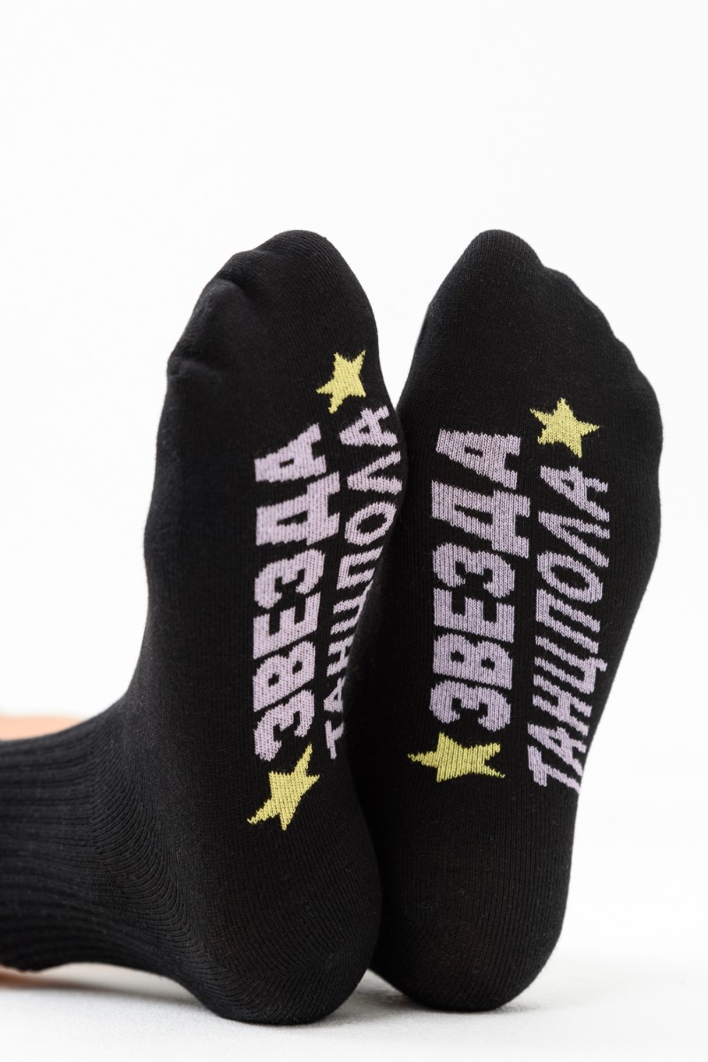 Представляем Вашему вниманию женские носки, в комплекте 1 пара. Широкая резинка по всей верхней части носка. На стопе надпись "Звезда танцпола".