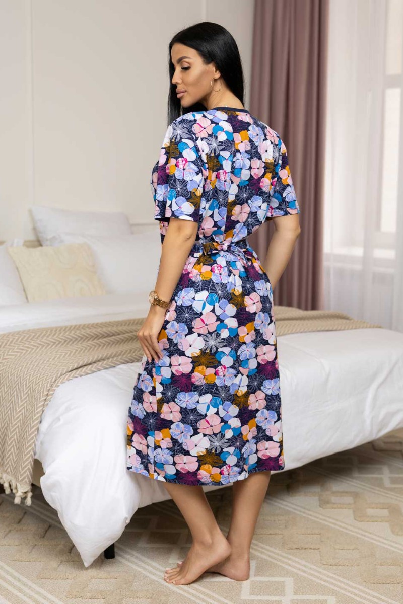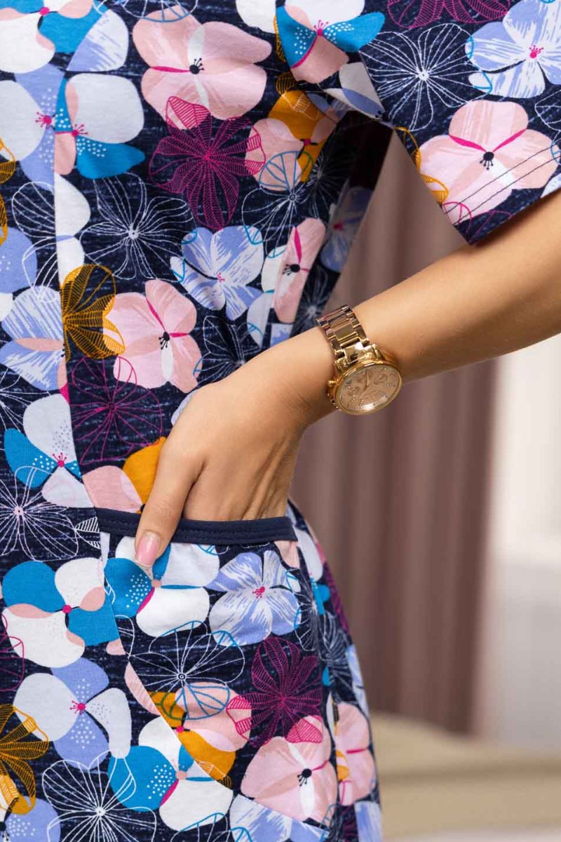 Представляем Вашему вниманию халат женский из трикотажного полотна - кулирка, длиной ниже колена, прямого силуэта. Полочка с рельефами и карманами в них. Рукав втачной базового покроя длиной до линии локтевого сгиба.