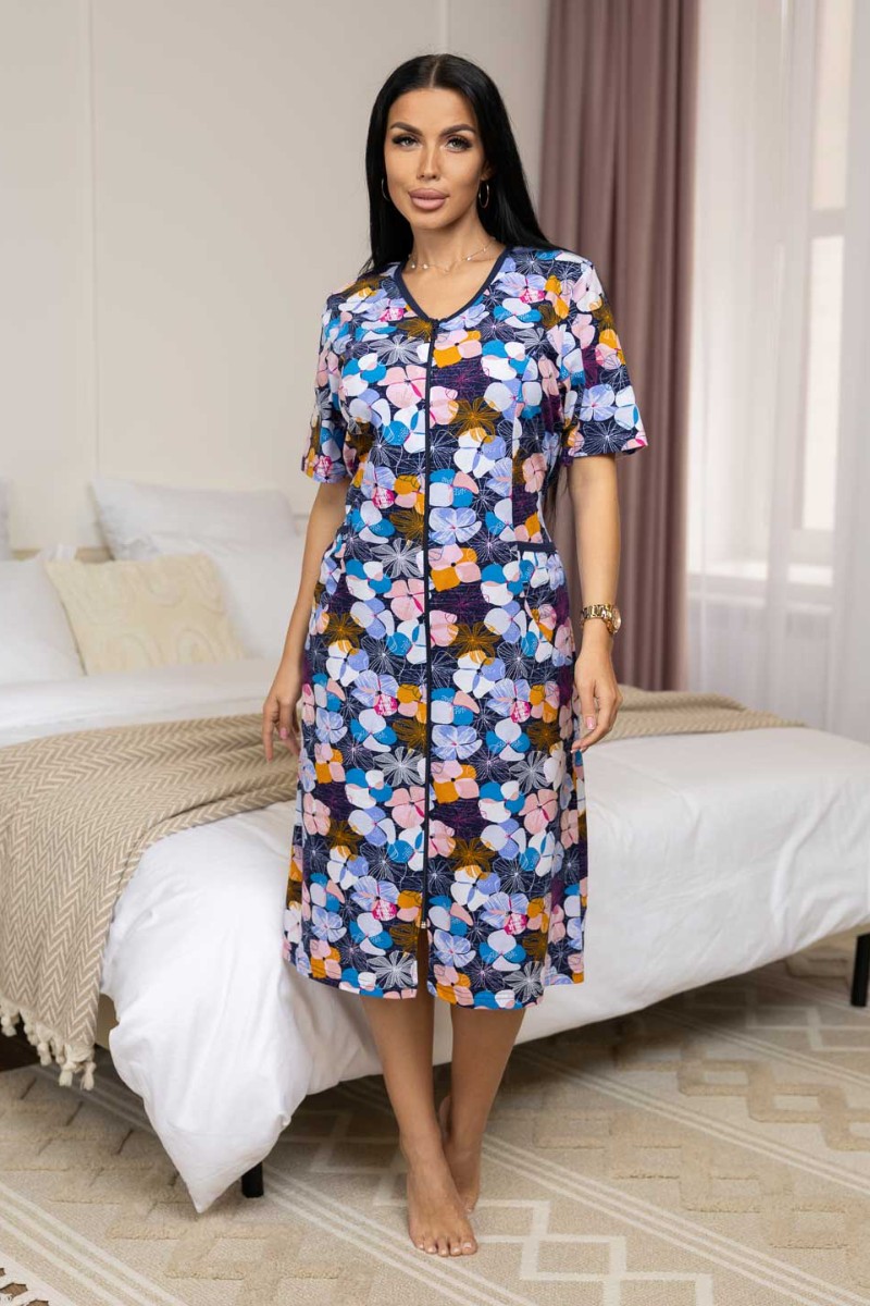 Халат женский 14/48 кулирка (р-ры: 48-62) синий-голубой-розовый