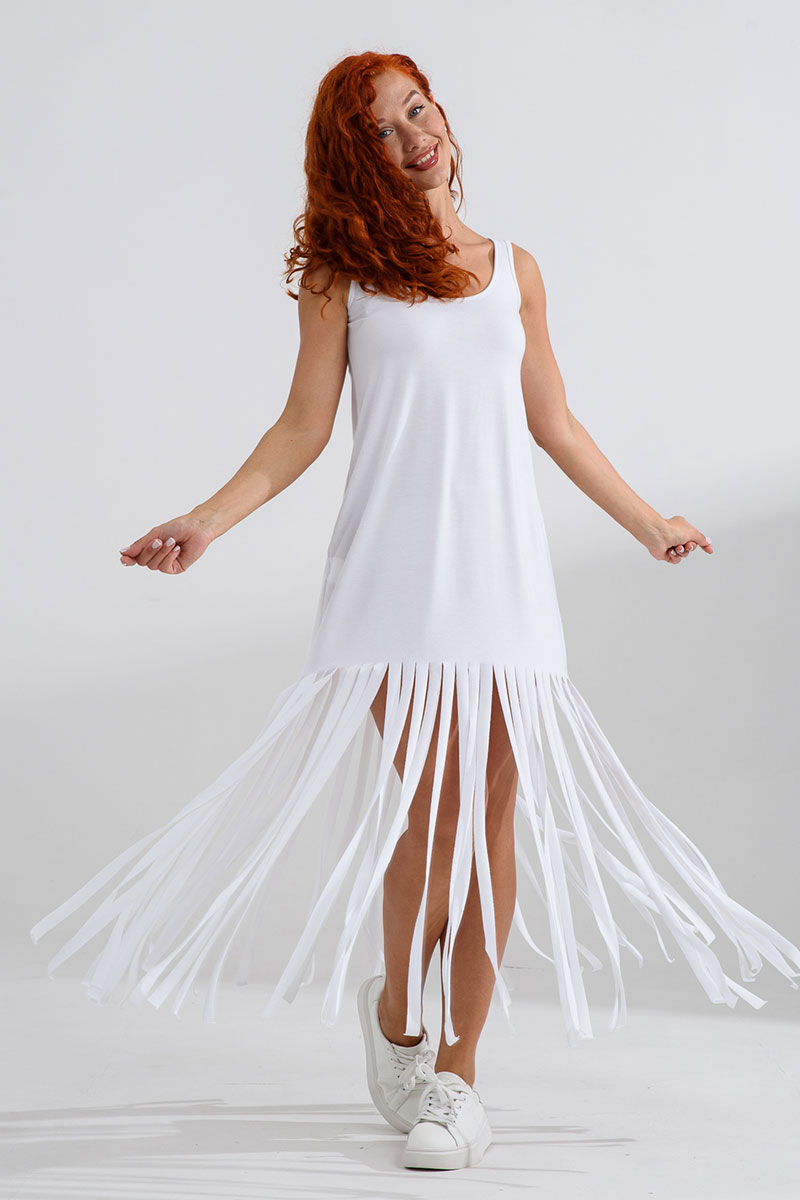 Представляем Вашему вниманию платье с бахромой из струящейся вискозы. Лёгкое, летящее, манящее. Дарит невероятное ощущение женственности! Собираетесь на курорт? Благодаря легкости материала - отлично подойдёт как сарафан, летнее платье в отпуск. Платье с бахромой очень комфортно в жару. Это платье надо брать! Отлично впишется в Ваш гардероб! Прекрасно садится на фигуру!