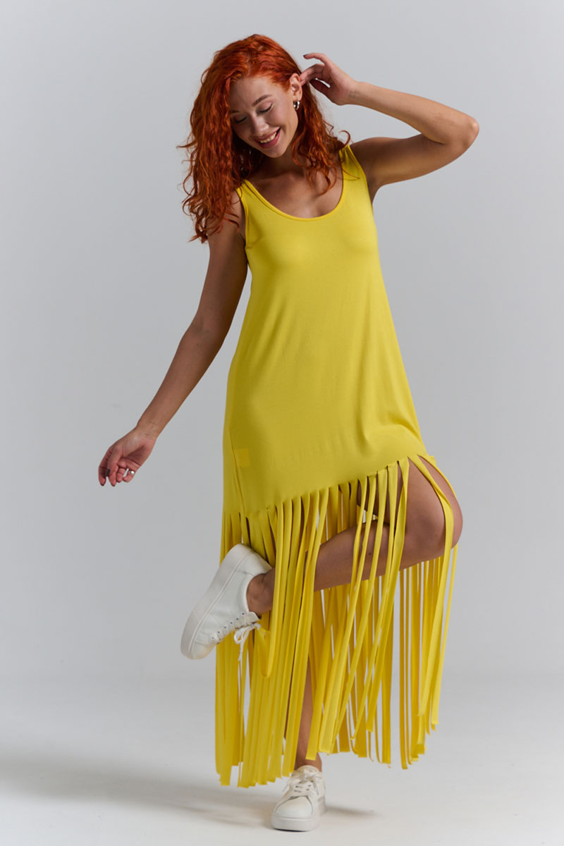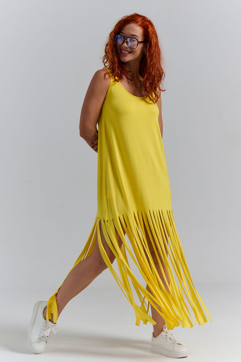 Представляем Вашему вниманию платье с бахромой из струящейся вискозы. Лёгкое, летящее, манящее. Дарит невероятное ощущение женственности! Собираетесь на курорт? Благодаря легкости материала - отлично подойдёт как сарафан, летнее платье в отпуск. Платье с бахромой очень комфортно в жару. Это платье надо брать! Отлично впишется в Ваш гардероб! Прекрасно садится на фигуру!