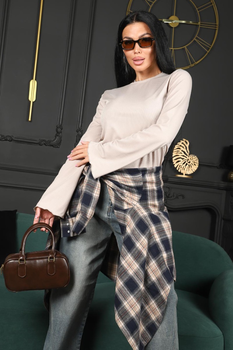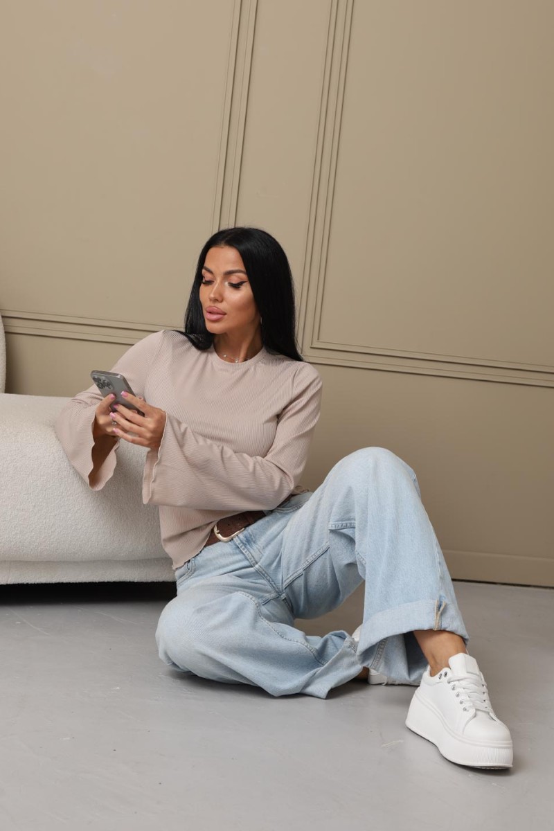 Лонгслив женский 2028/1 лапша (р-ры: 42-56) бежевый