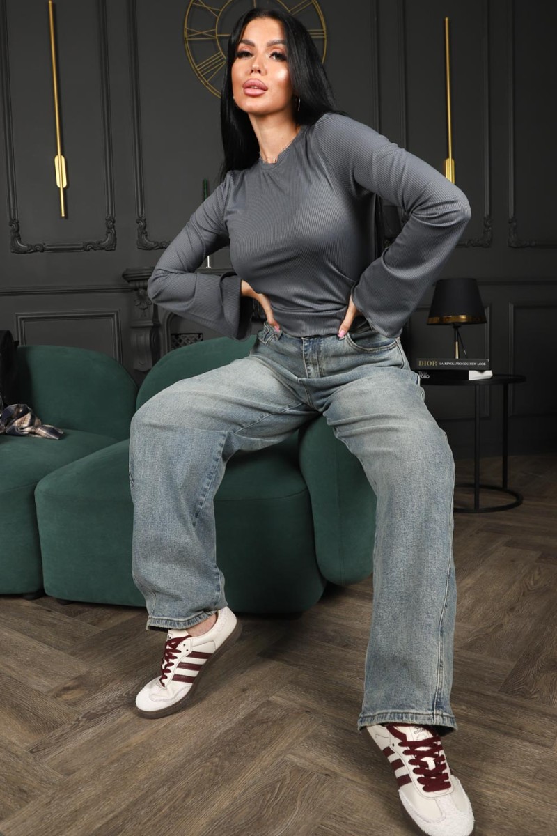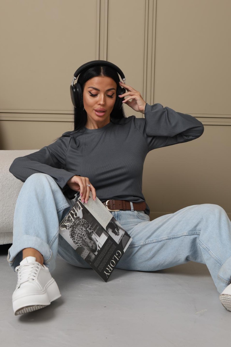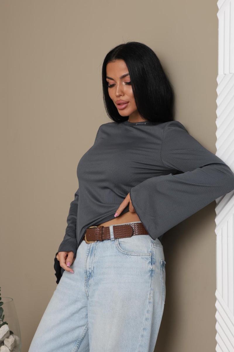 Лонгслив женский 2028/2 лапша (р-ры: 42-56) серый