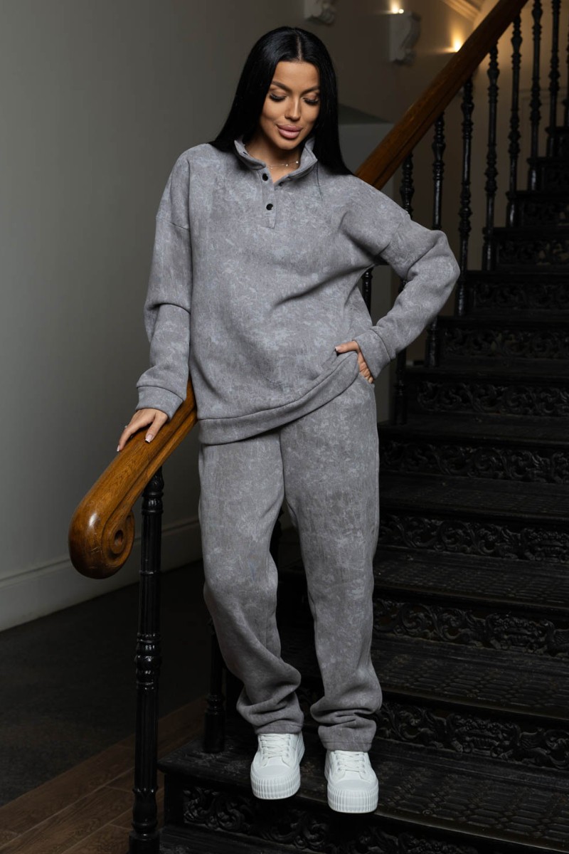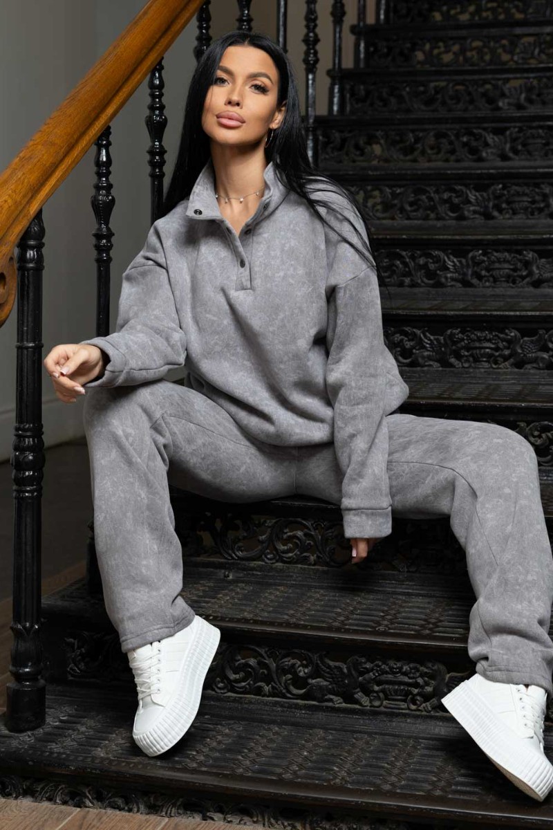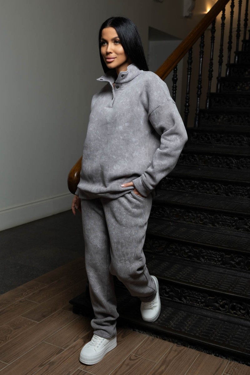 Костюм двойка женский 2074/1 футер 3-х нитка с начесом (р-ры: 48-58) серый