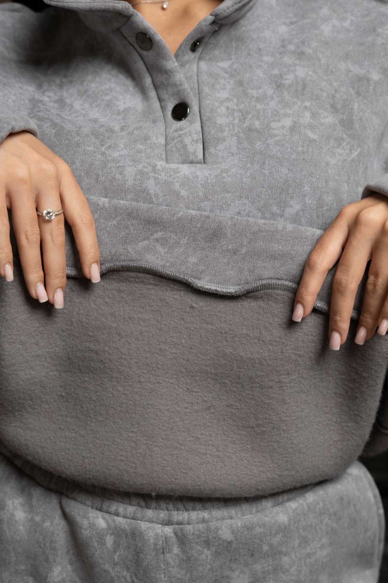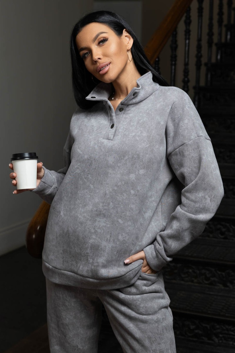Представляем Вашему вниманию зимний костюм из ультра модной ткани с начесом, эффект варёнки добавляет изюминку изделию. Толстовка с воротником на кнопках защитит в морозы, сохранит тепло и комфорт. Брюки полной длины с карманами можно заправить в ботинки. В нашем костюме вы будите чувствовать себя уютно даже в самый морозный день.