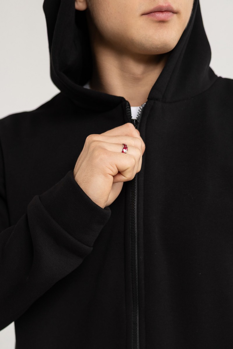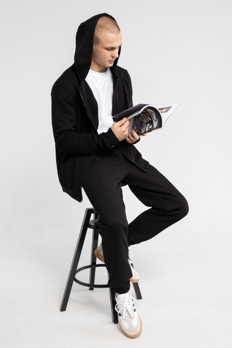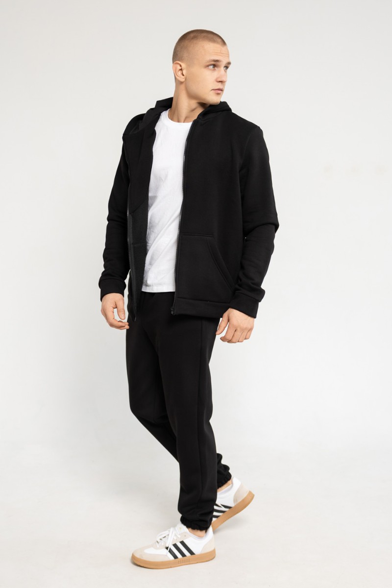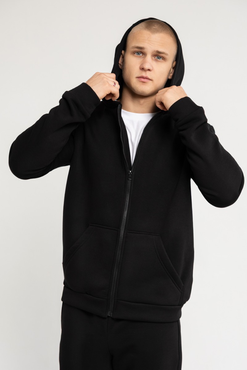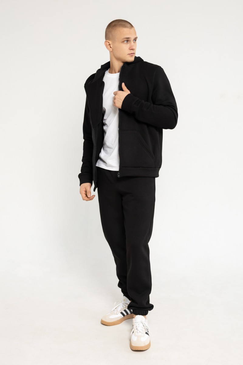 Представляем Вашему вниманию утепленный мужской костюм из футера с начесом, состоящий из худи на молнии и брюк джоггеров. Толстовка с капюшоном и карманом кенгуру - подарит комфорт даже в самый морозный день. Брюки с поясом на резинке и манжетой по низу - защитят Вас от ветра и снега, сохранят тепло. Наш утепленный костюм идеально подойдет для вечерних прогулок и активных занятий спортом на свежем воздухе!