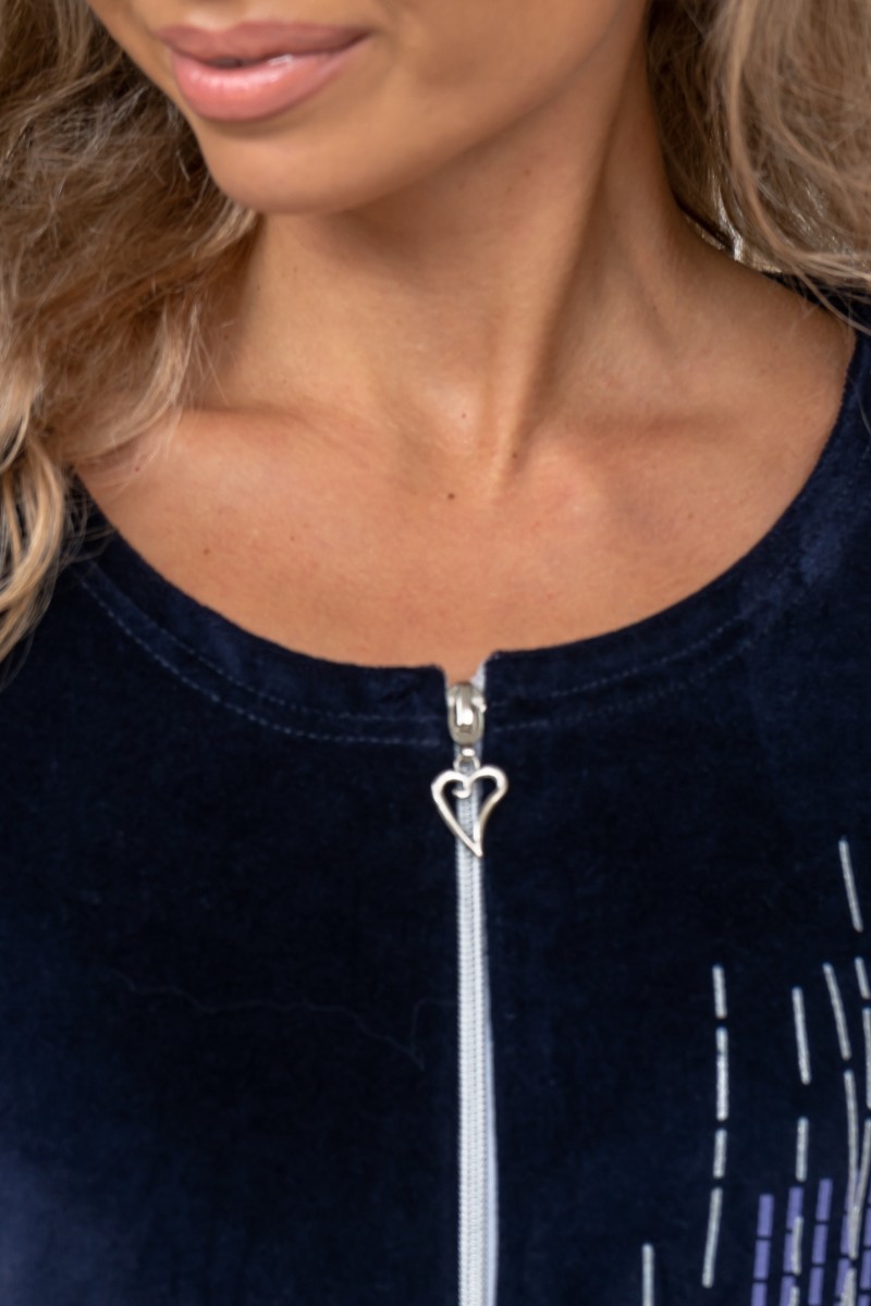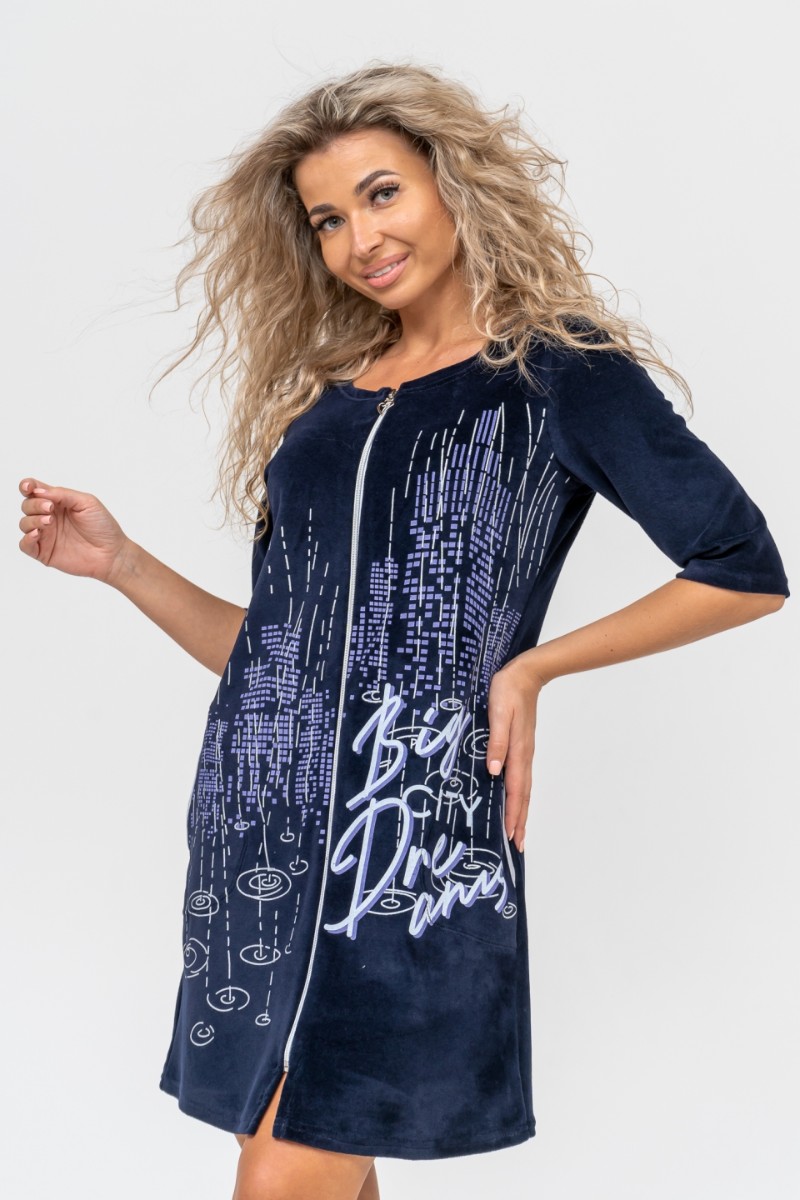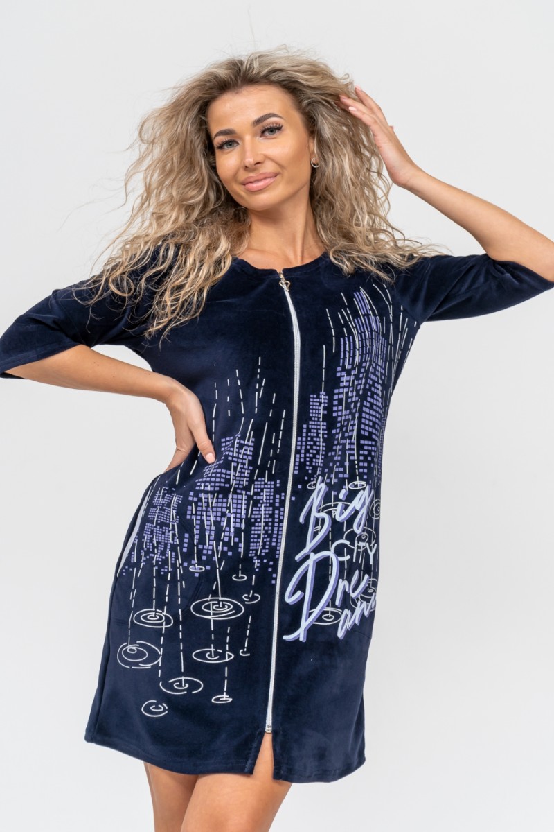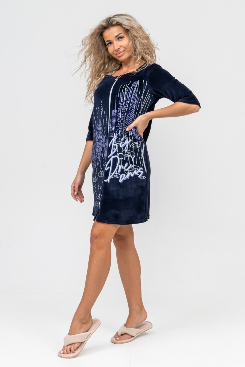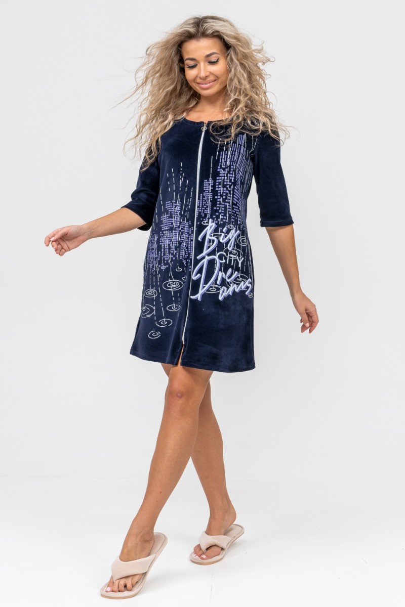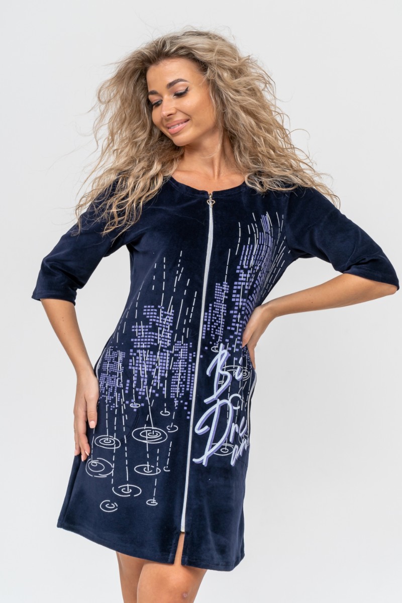 Представляем Вашему вниманию мягкий женский халат из велюра высокого качества - отличный выбор для тех, кто больше всего ценит нежность материала и приятную на ощупь текстуру. Нарядный и удобный домашний халат средней длинны на молнии, круглый неглубокий вырез, рукава длиной 3/4. Украшением этой модели стал эксклюзивный принт. Этот женственный и нежный наряд подарит ощущение роскоши и уюта своей обладательнице. В этом халате приятно не только окунуться в мир спокойствия и домашнего уюта, он идеально подойдет для встречи гостей.