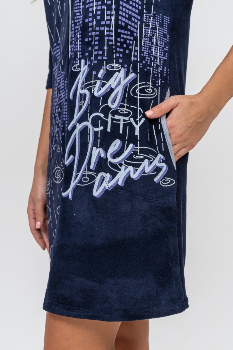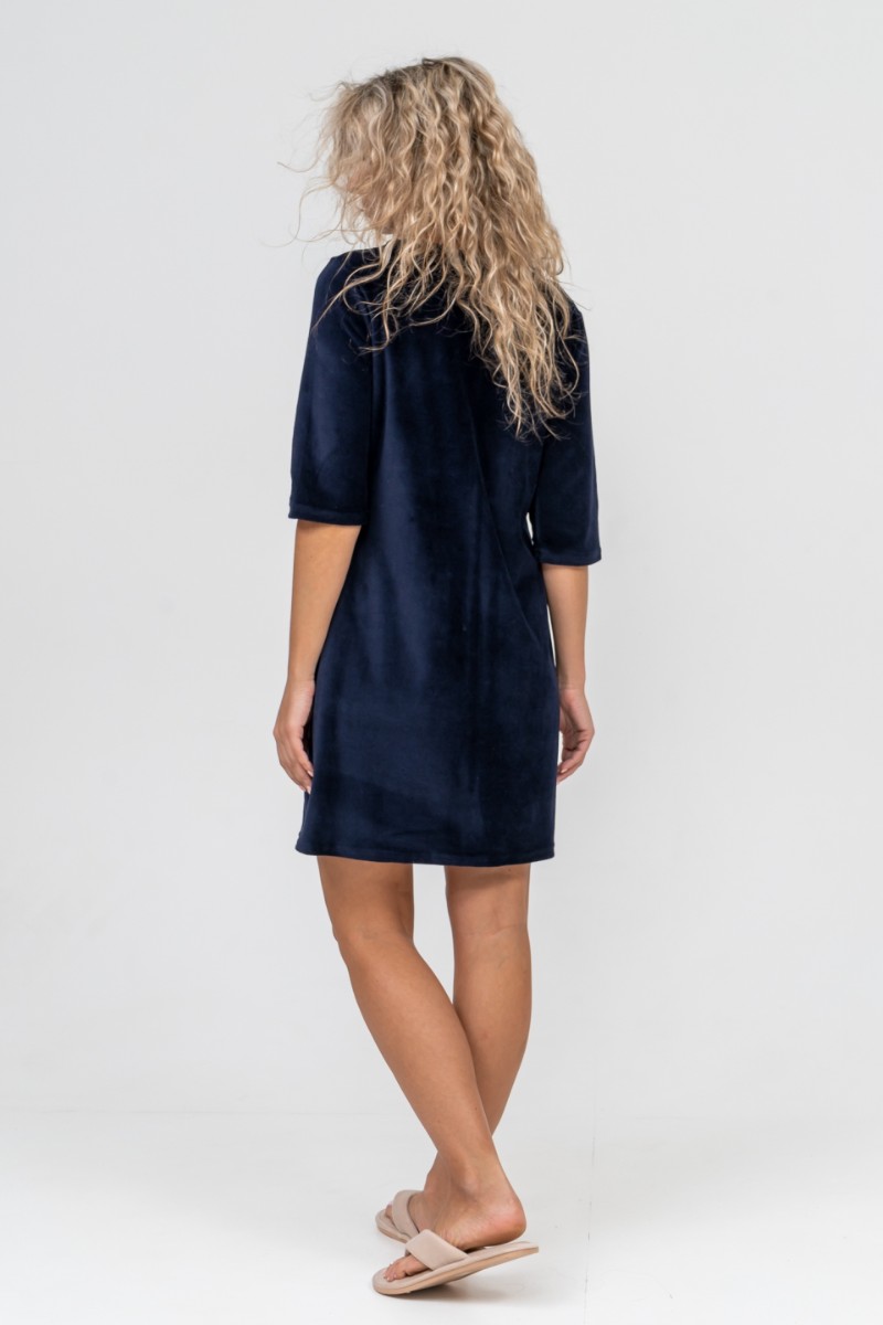 Халат женский Х-032 велюр (р-ры: 44-54) темно-синий