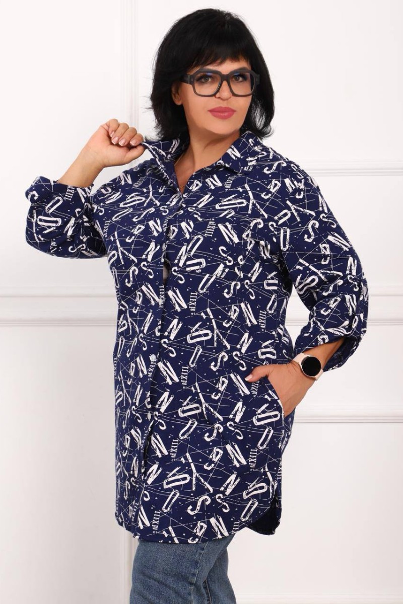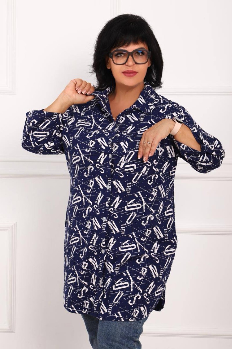 Рубашка женская "Лео" хлопок (р-ры: 52-66) буквы синий