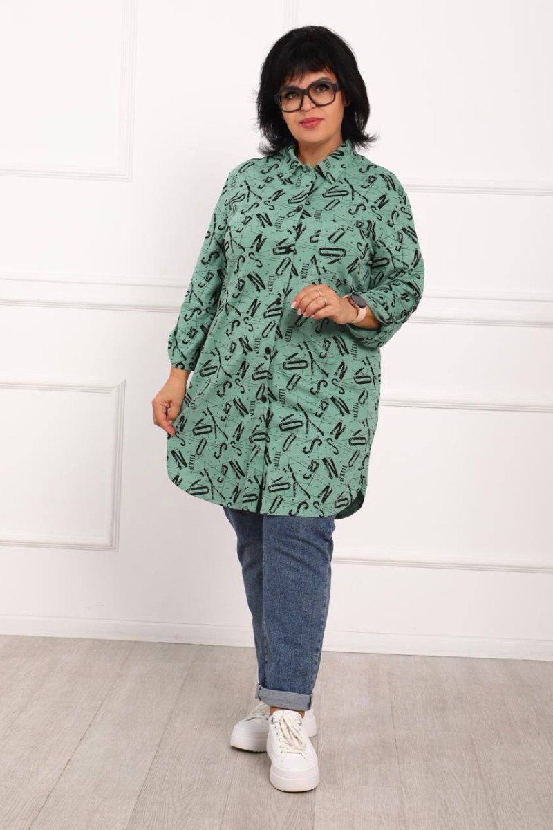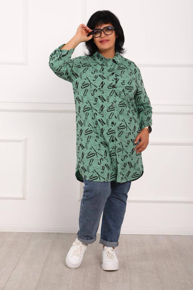 Рубашка женская "Лео" хлопок (р-ры: 52-66) буквы зелёный