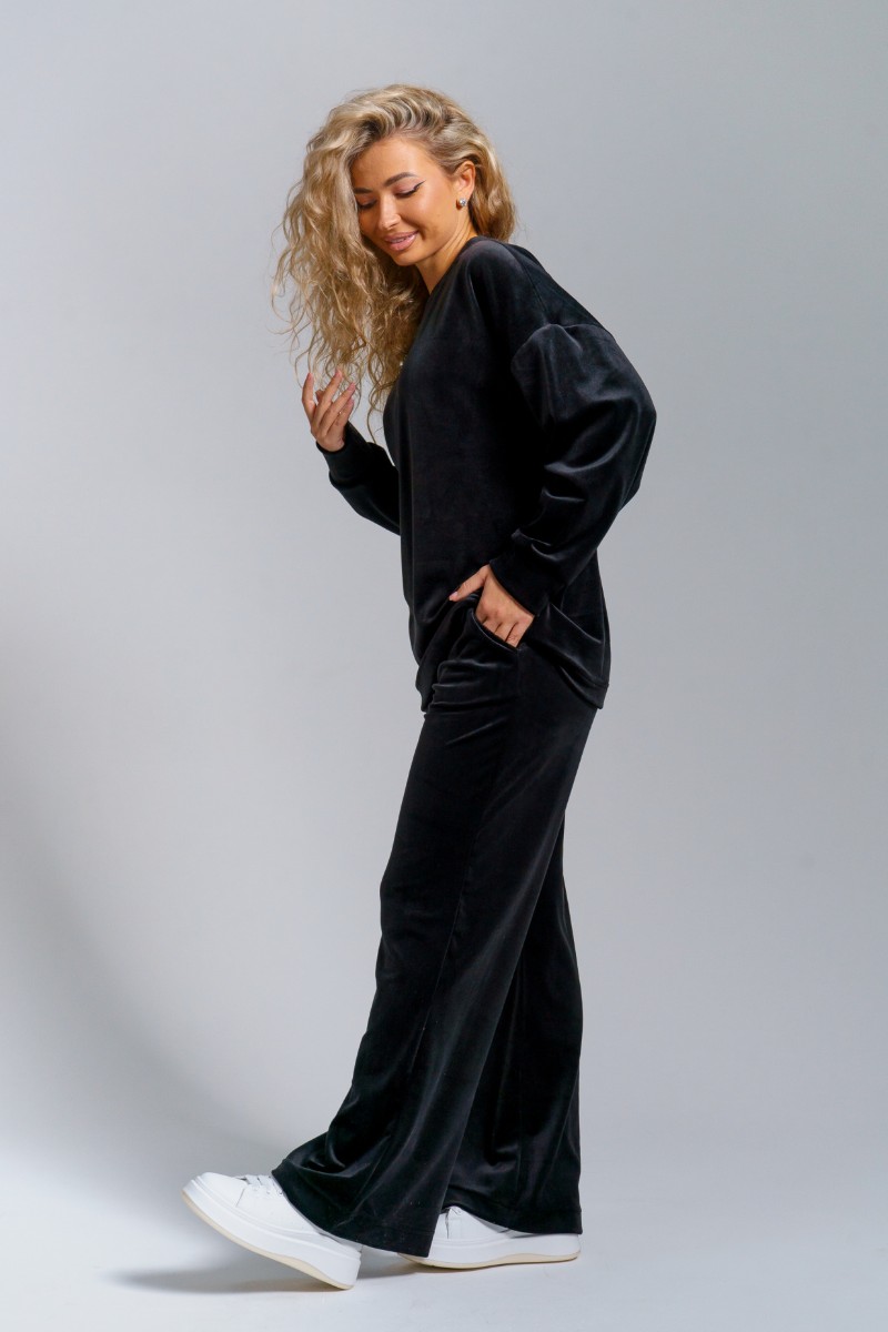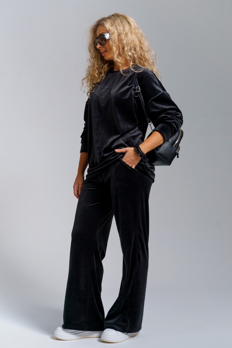 Костюм двойка женский 974 велюр бамбук (р-ры: 44-58) черный