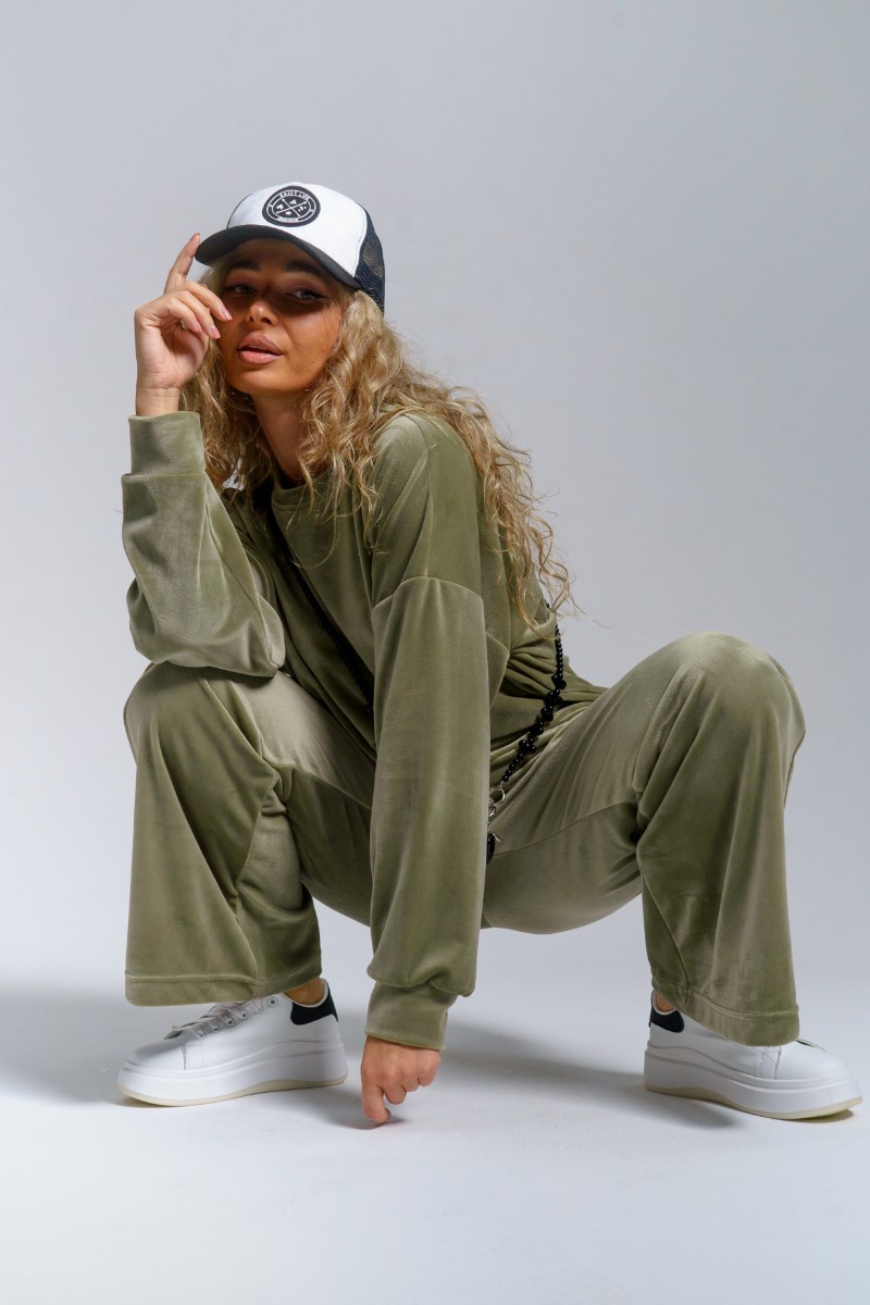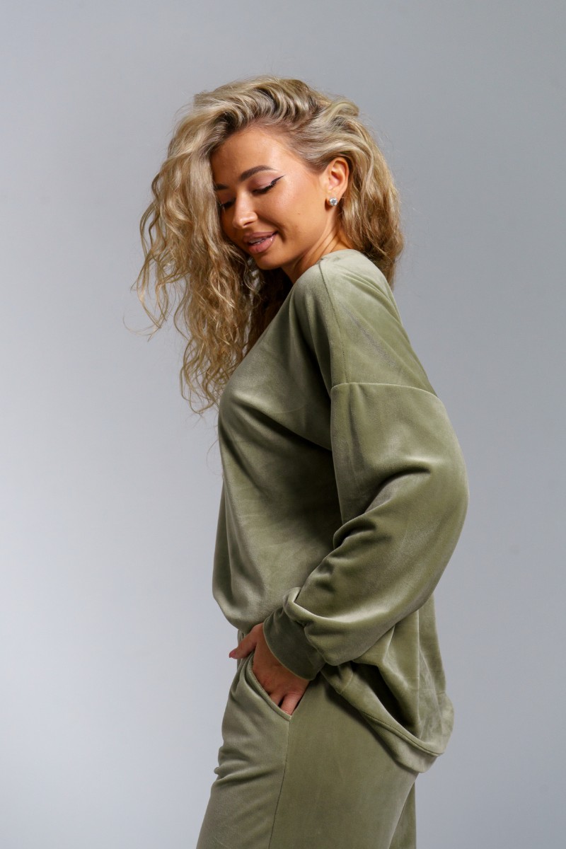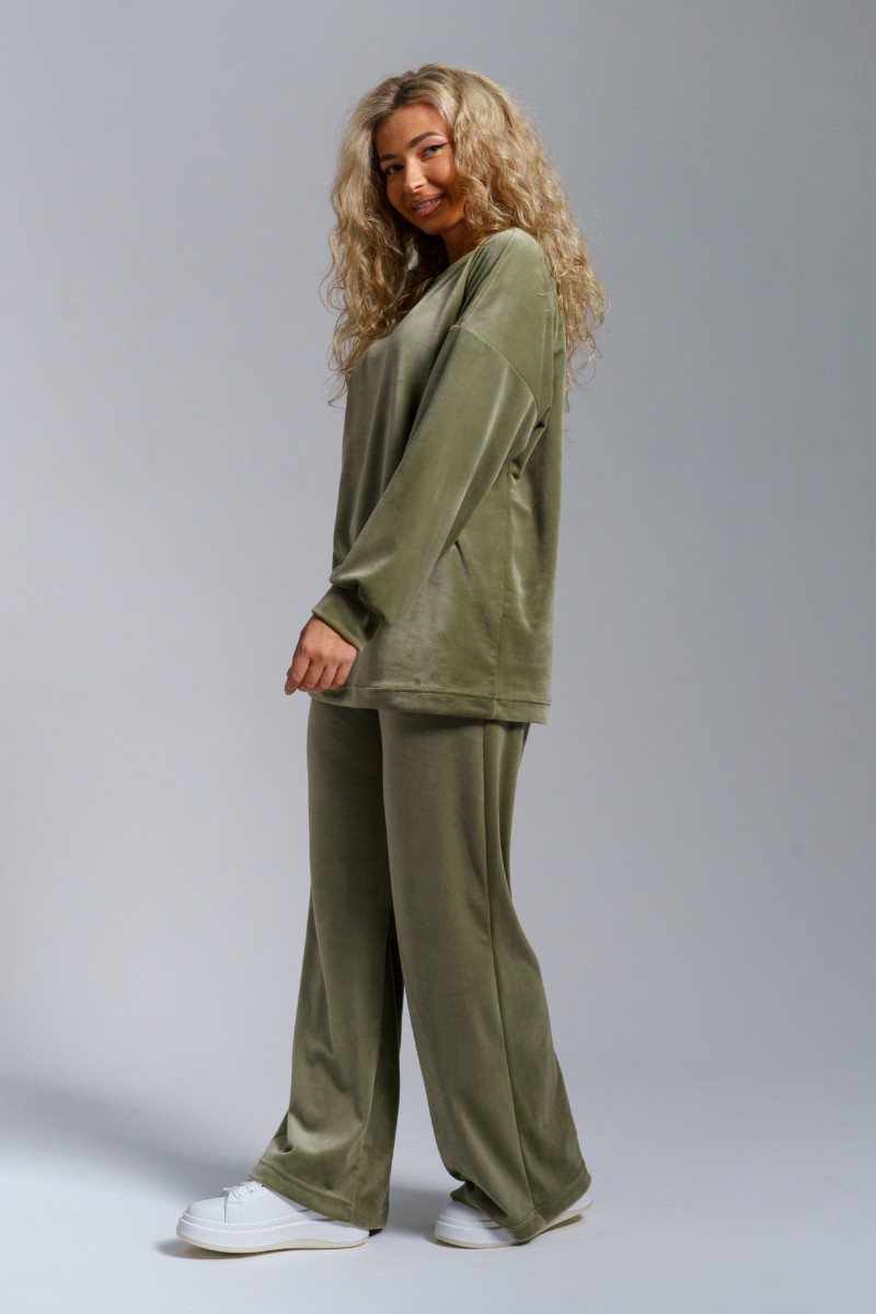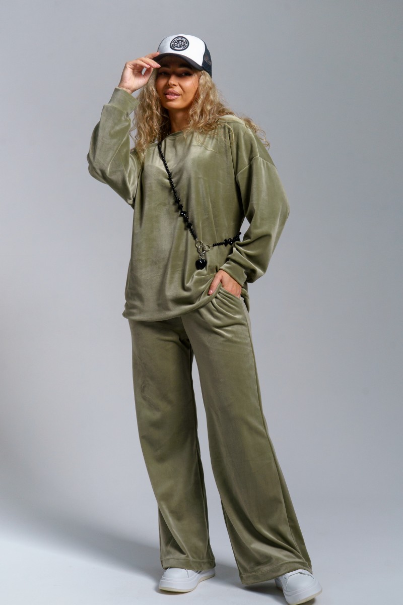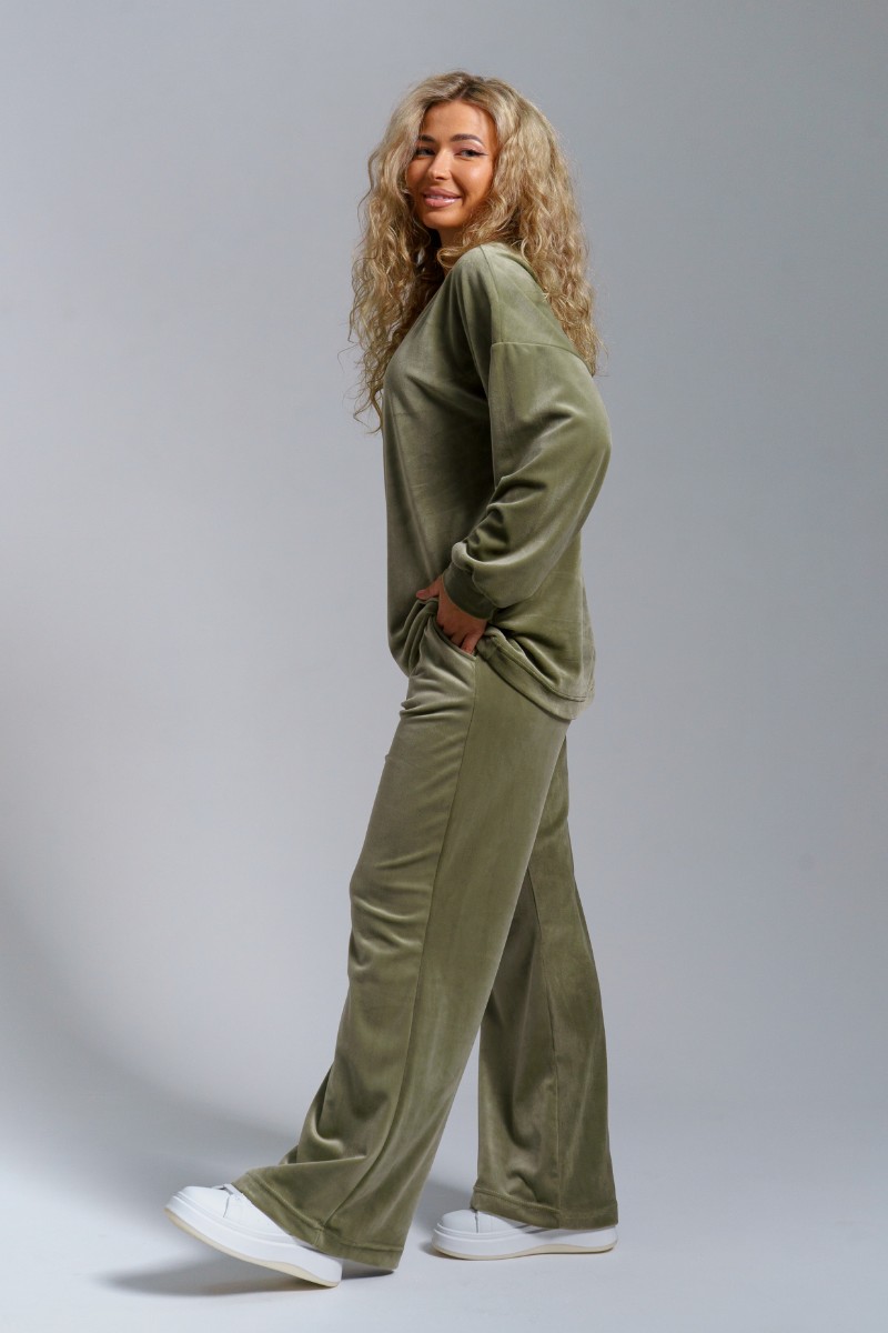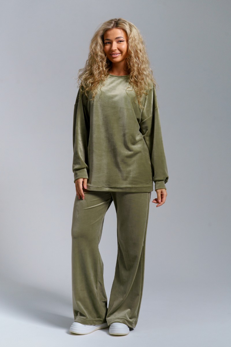 Костюм двойка женский 974 велюр бамбук (р-ры: 44-58) св.олива