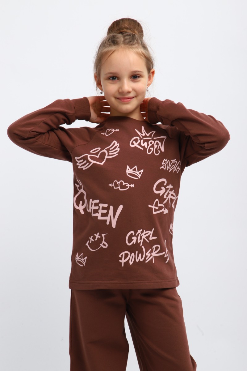 Пижама детская "Квин" футер (р-ры: 134-164) шоколад