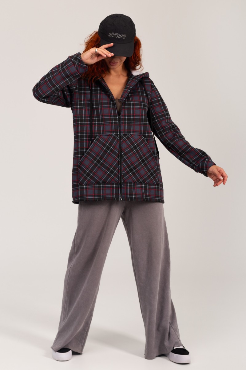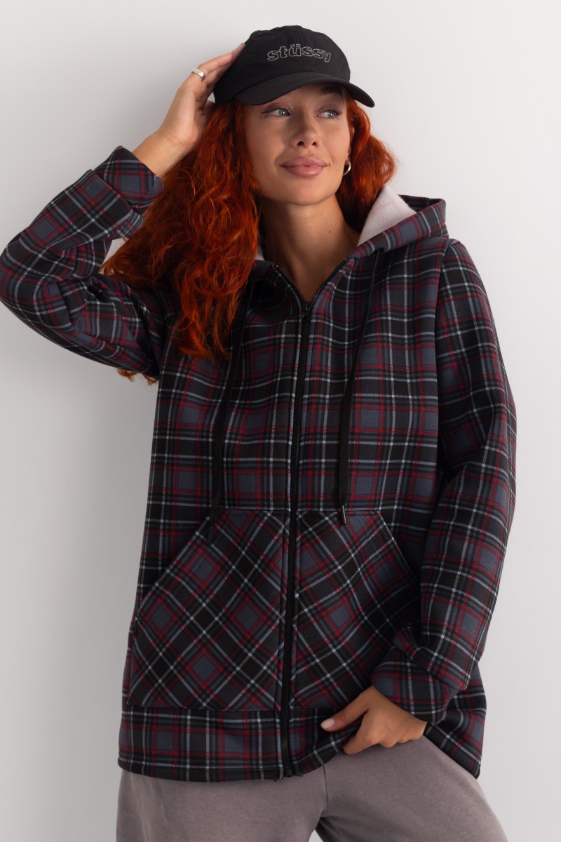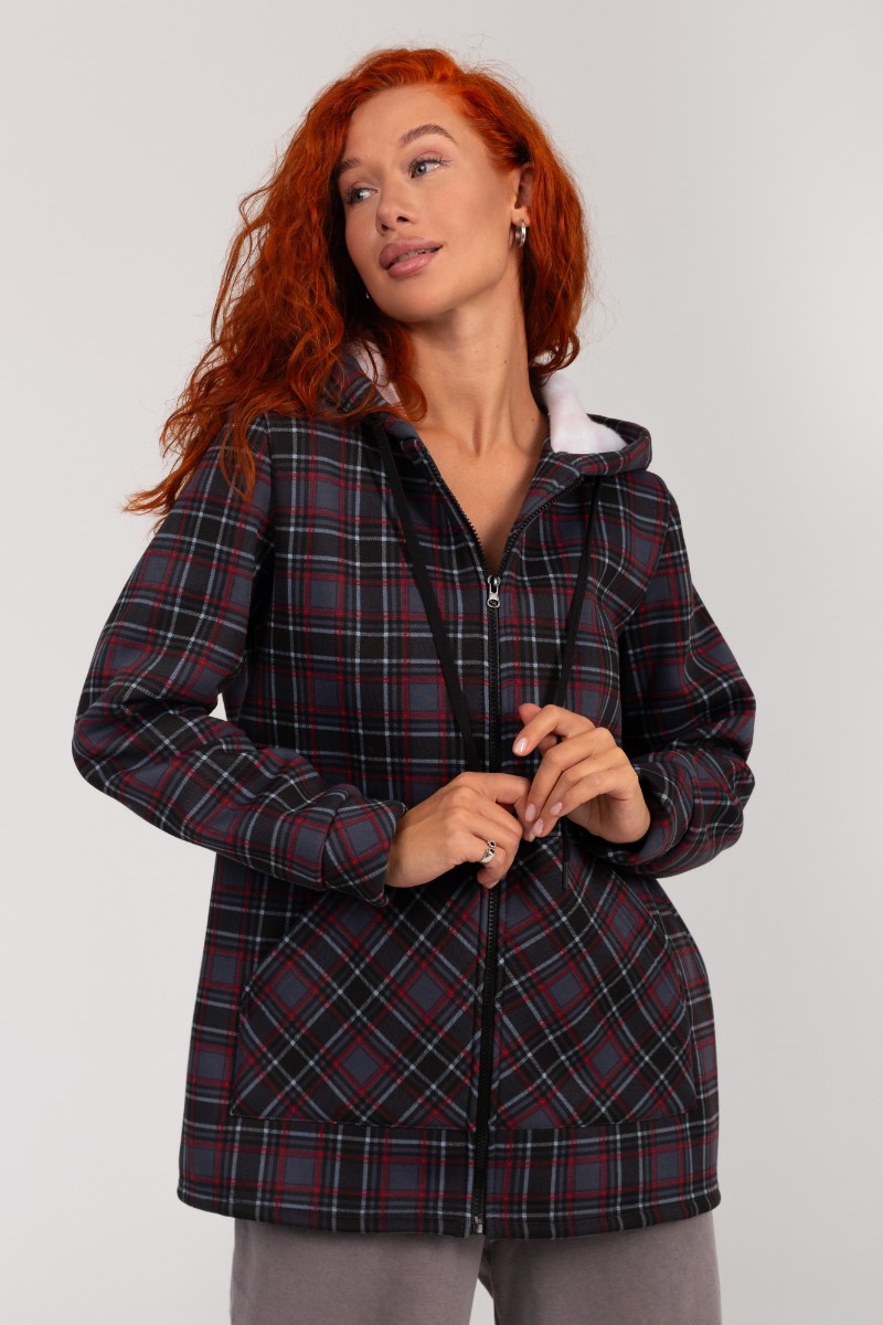 Толстовка женская ФТ-16 "Роксана" футер 3-х нитка с начёсом (р-ры: 48-62) серая клетка