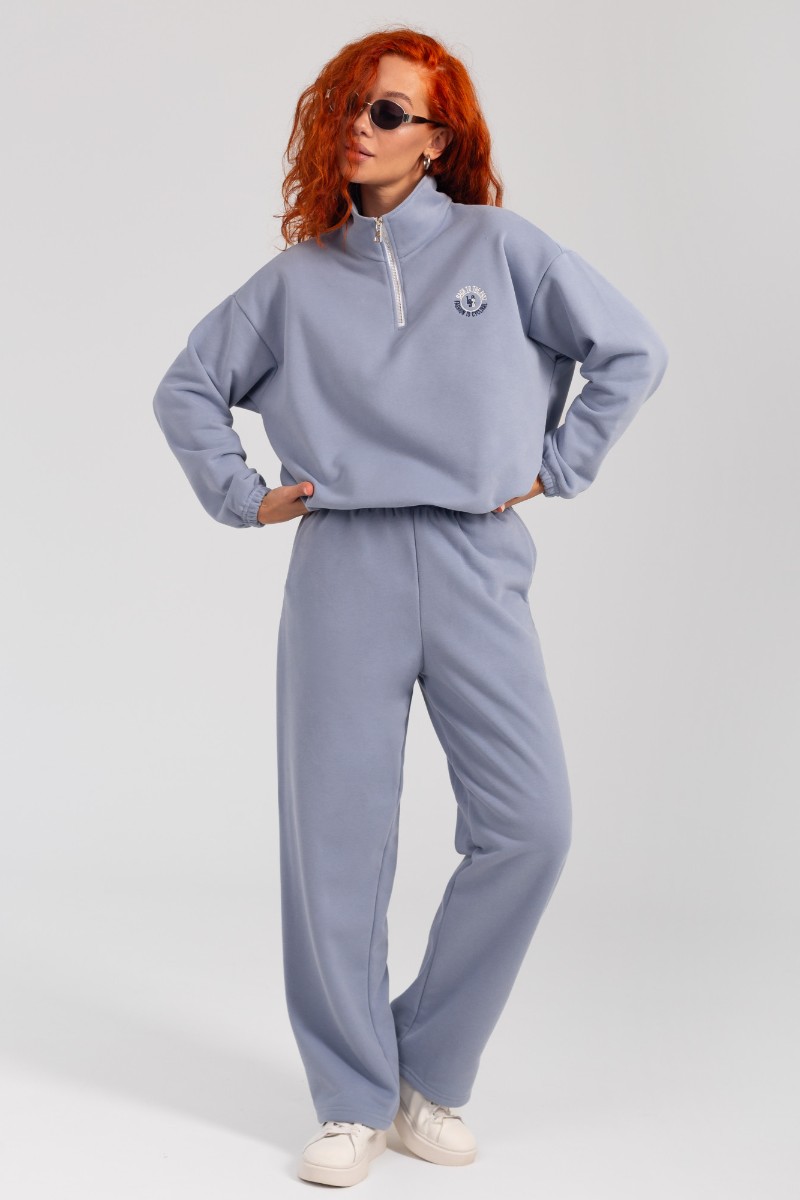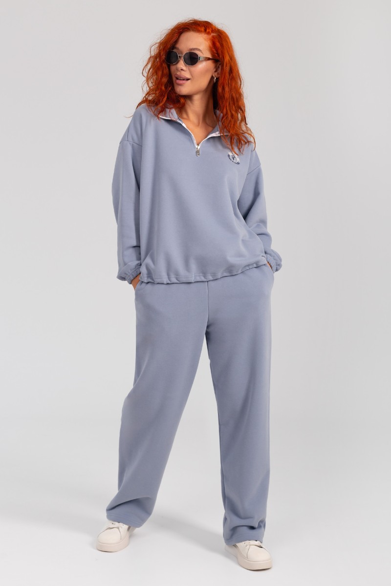 Костюм двойка женский ФК-52 "Теона" футер петля (р-ры: XS-L) серо-голубой