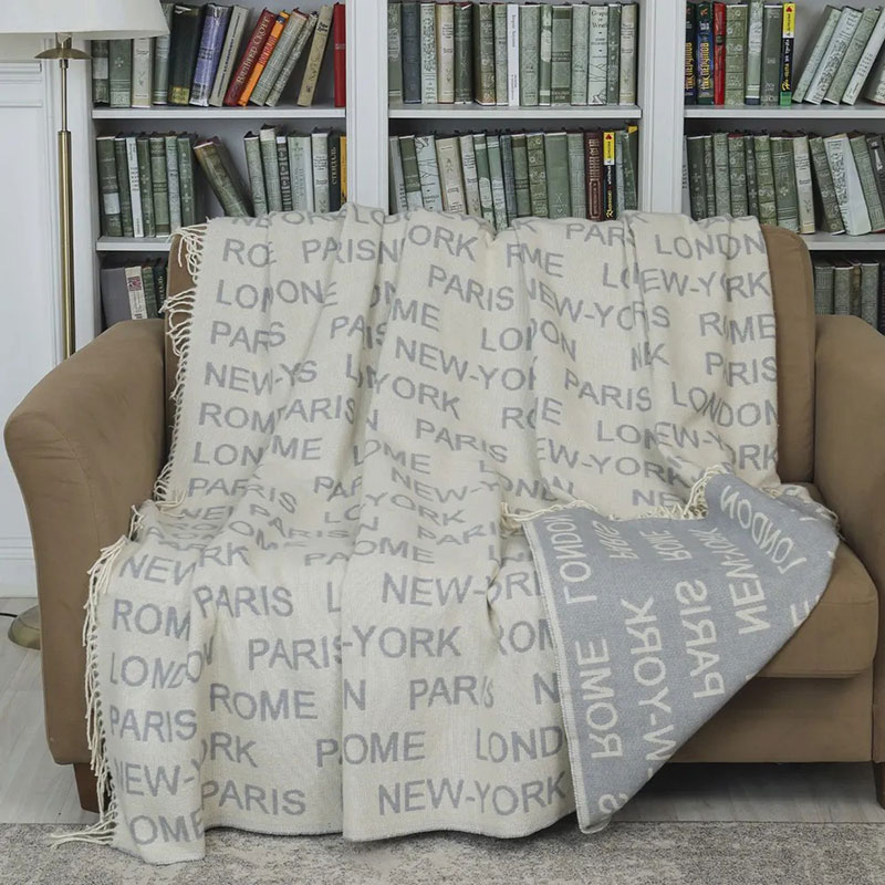Представляем Вашему вниманию плед "City" - по рисунку и качеству не имеет аналогов на рынке, выгодно отличаясь от привычных дизайнов своей необычной расцветкой. На жаккардовом пледе изображены названия крупных городов мира, которые внесут изысканный шарм в Ваш дом. Оригинальный дизайн придется по вкусу как любителям классического стиля, так и поклонникам стиля модерн.