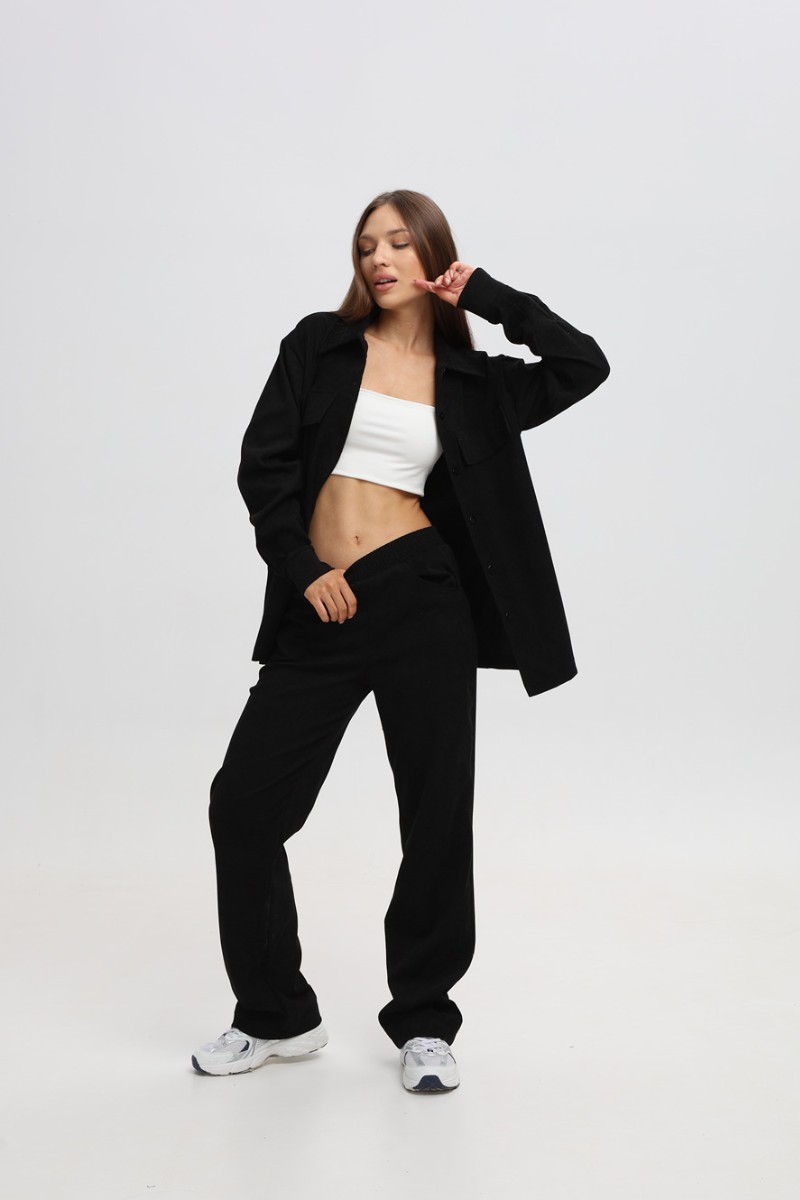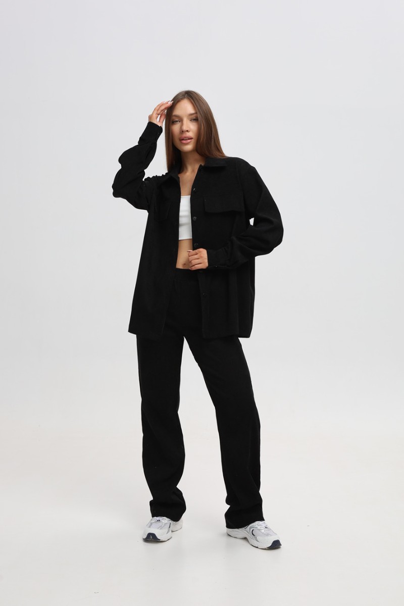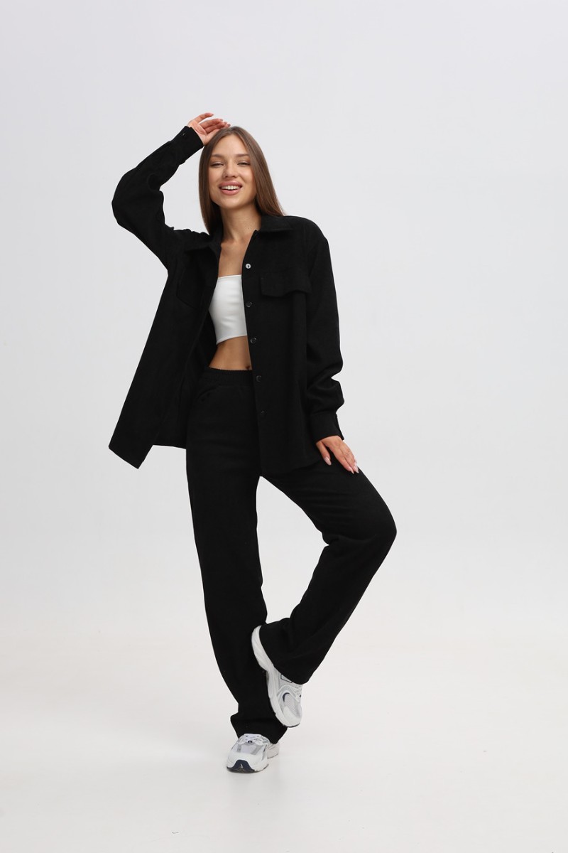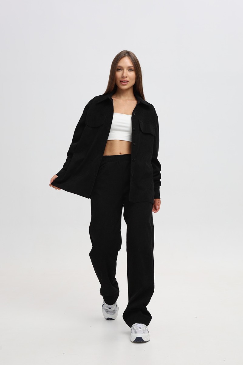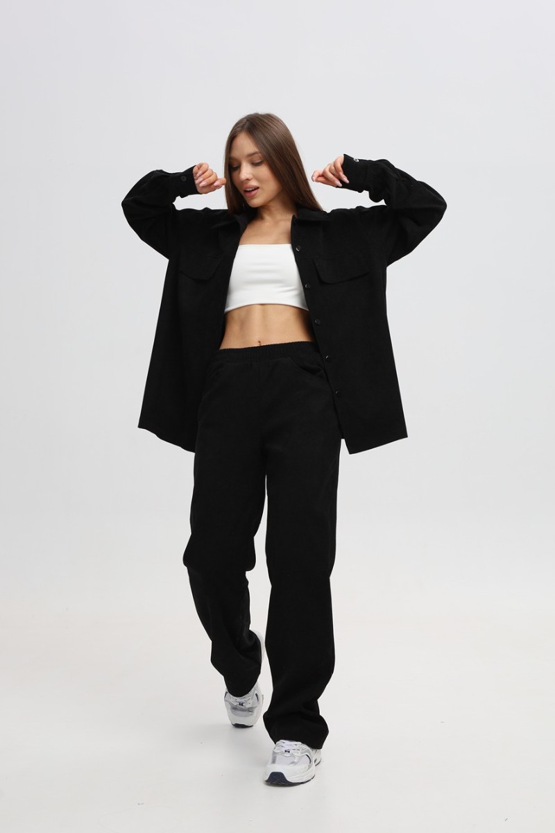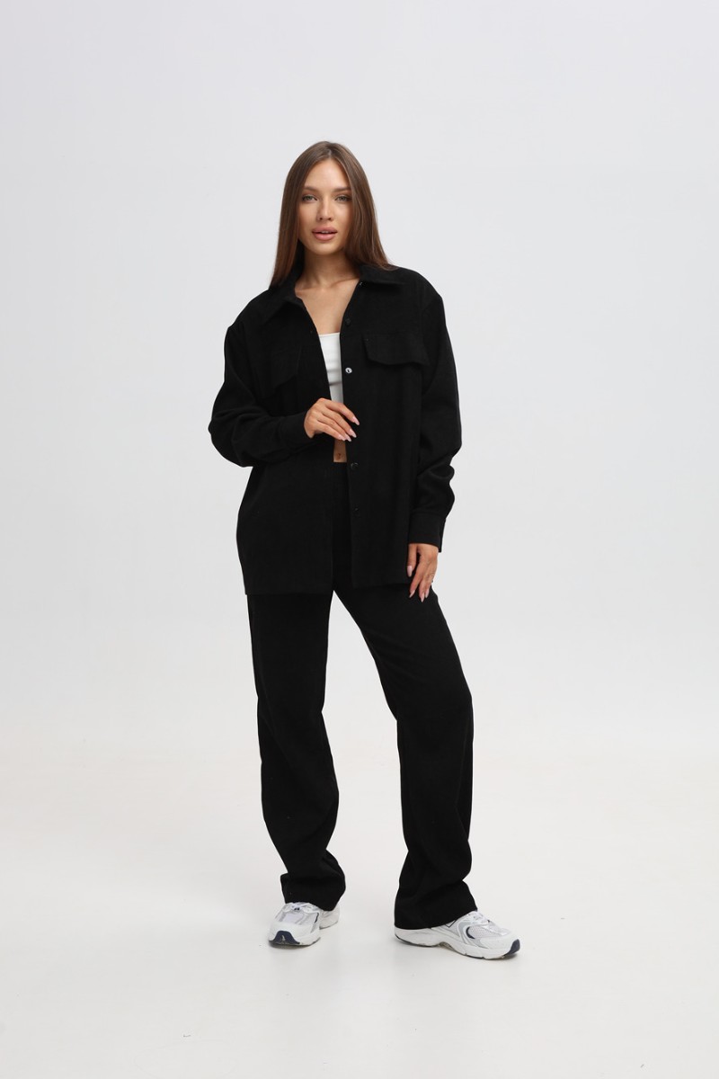 Представляем Вашему вниманию спортивный женский костюм, выполненный из мягкого вельветового материала, который придает ему модный и элегантный вид. Костюм для женщин состоит из рубашки оверсайз и брюк прямого кроя, создающих гармоничный и современный образ. Однотонный оттенок делает его универсальным для разных случаев — от повседневных прогулок до офисного или делового стиля. Рубашка свободного фасона с длинными рукавами украшена классическим воротником и застегивается на пуговицы. Вельвет обладает приятной текстурой, которая сохраняет комфорт даже при длительном ношении. Брюки имеют удобные карманы, прямой силуэт, что делает их подходящими для девушек и женщин разных возрастов. Эластичный пояс обеспечивает удобную посадку, а продуманная длина визуально вытягивает силуэт. Удобная и трендовая одежда в современном стиле, которая дополнит базовые и спортивные образы или молодежный лук в стиле casual (кэжуал). Нарядный костюм отлично подойдет как для осенних прохладных дней, так и для создания стильных летних образов. Женский костюм-двойка отличается универсальностью благодаря сочетанию комфорта и модного дизайна. Он может использоваться как спортивный наряд для активного отдыха или домашний вариант для уюта в холодное время года. Актуальный oversize крой подчеркивает современные тенденции в мире моды.