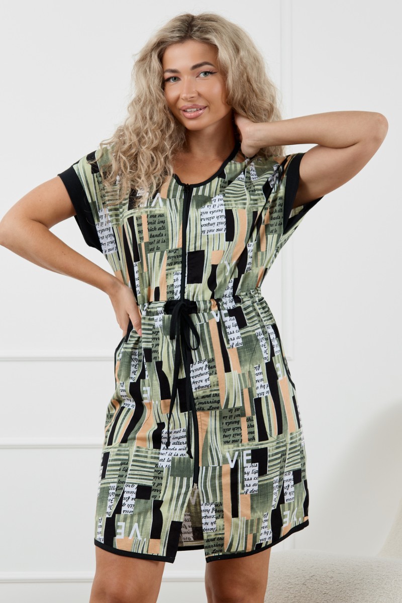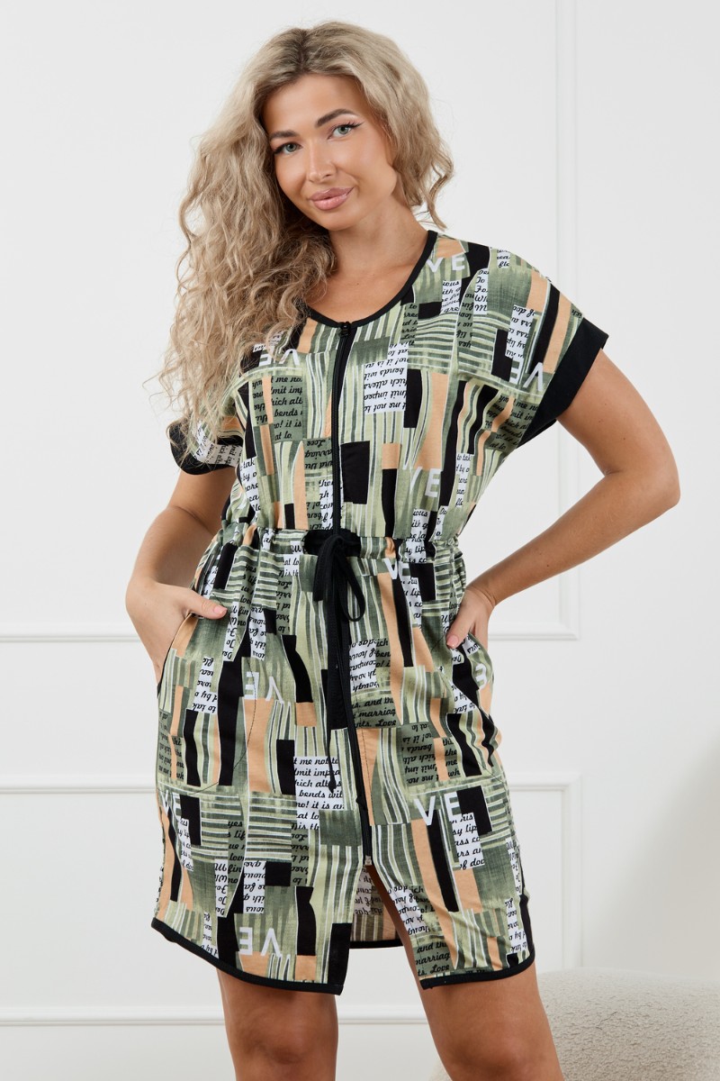 Представляем Вашему вниманию женский трикотажный халат на молнии без сомнения станет самой желанной и любимой вещью в гардеробе любой дамы. Халатик укороченный, на кулисе со шнурком, с удобными карманами и молнией. Выглядит стильно и современно. Халатик такого плана подходит для фигур разного типа. Легкий и мягкий, качественный, дышащий, сшит из высококачественного трикотажа, подарит вам абсолютную непринужденность и легкость, простор в движении, идеально подойдет для беременных и кормящих и будет хорошим сопровождением в роддом и не вызовет раздражения, так как создан из натуральной ткани. Благодаря этому может стать прекрасным подарком для, мамы, подруги, бабушки, сестры или коллеги на любой праздник. Отлично сядет на женщин больших размеров. Данная модель будет кстати для отдыха на даче и даже поездки к морю. Домашняя одежда российского производства, имеет комфортную посадку, не линяет, не дает усадку после стирки и долго сохраняет первоначальный внешний вид. Халатик подчеркнет Ваш стиль и добавит молодежных нот в ваш образ, а затягивающийся пояс на талии придаст женственности и изящества вашему луку. Стирайте изделия из хлопка на бережном режиме с температурой не выше 30С, чтобы сохранить цвет, форму и фактуру материала. Приобретая наши изделия, радуйте себя и своих близких.