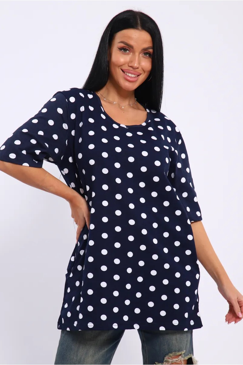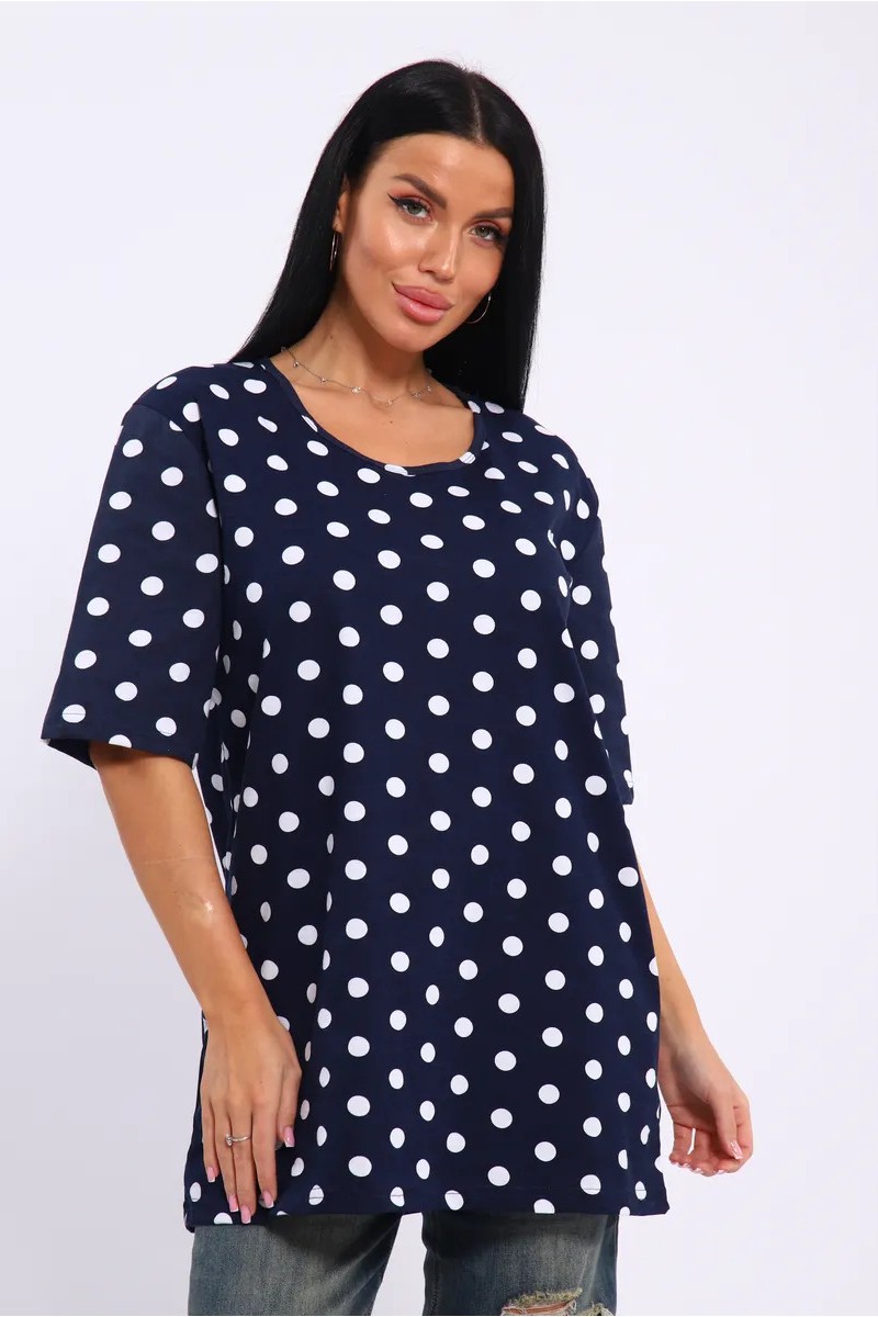 Футболка женская №700 кулирка (р-ры: 48-70) темно-синий белый горох