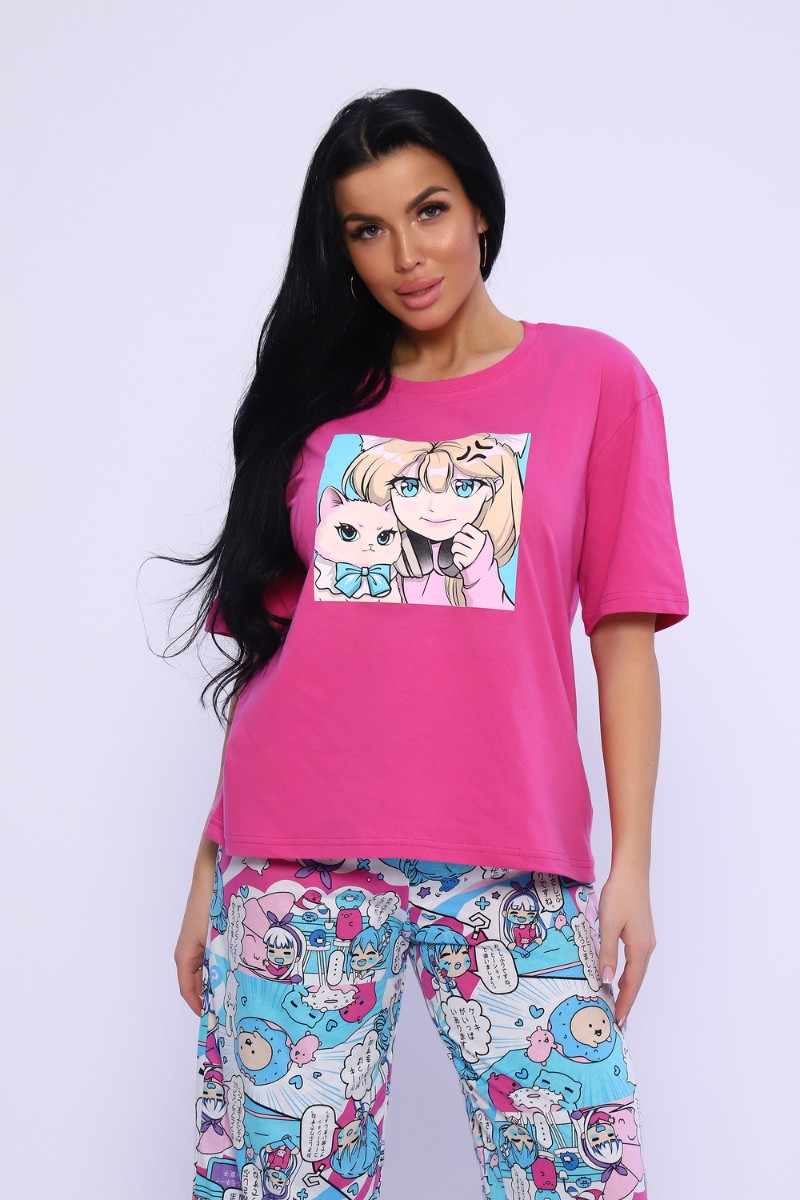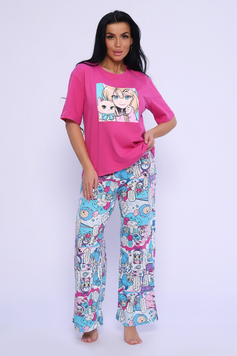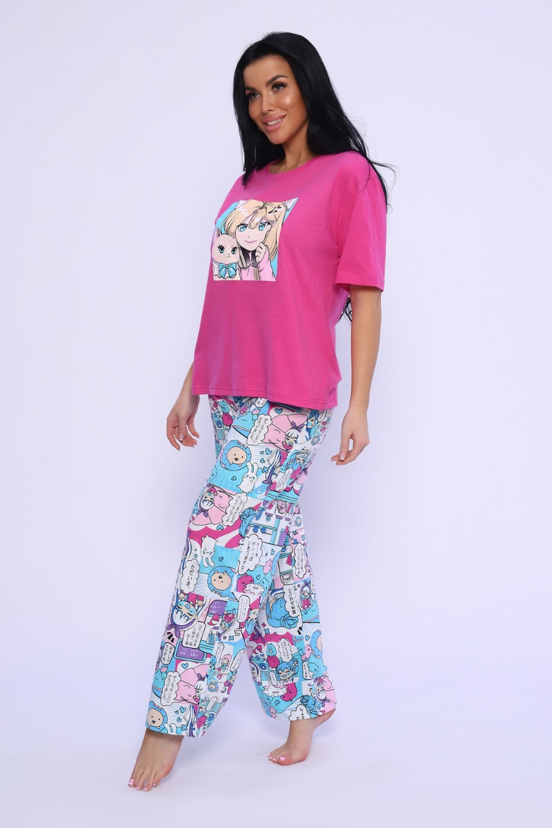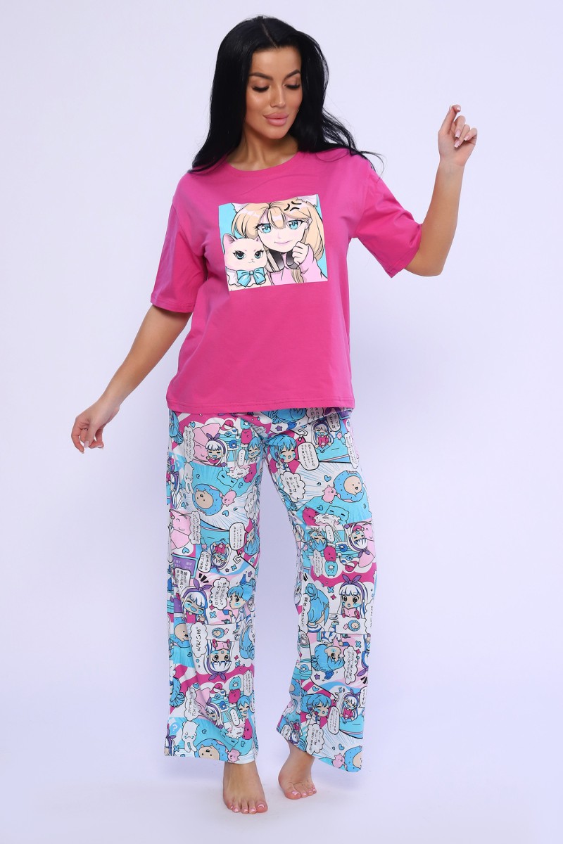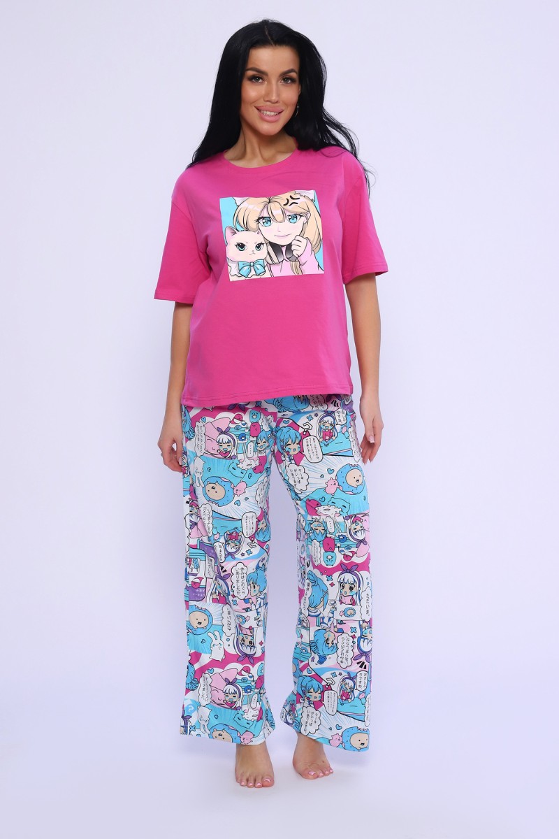 Представляем Вашему вниманию легкий женский костюм двойку, сшитый из натуральной, приятной телу кулирки - 100% хлопок, позволяющий коже дышать. Футболка прямого кроя с коротким рукавом и брюки свободного кроя. Комплект обеспечит полную свободу движений в повседневной носке. В нём Вы будете чувствовать себя комфортно и уверенно.