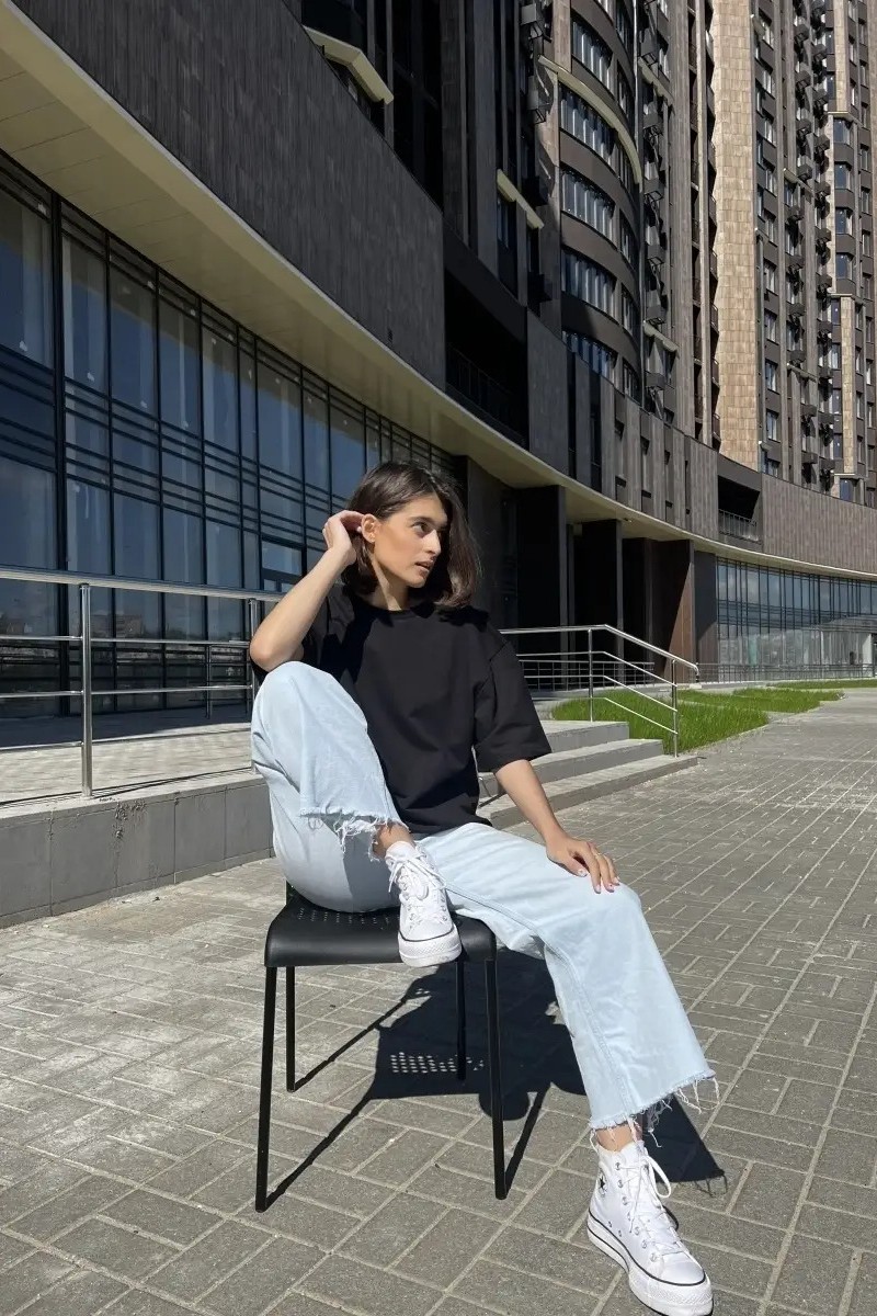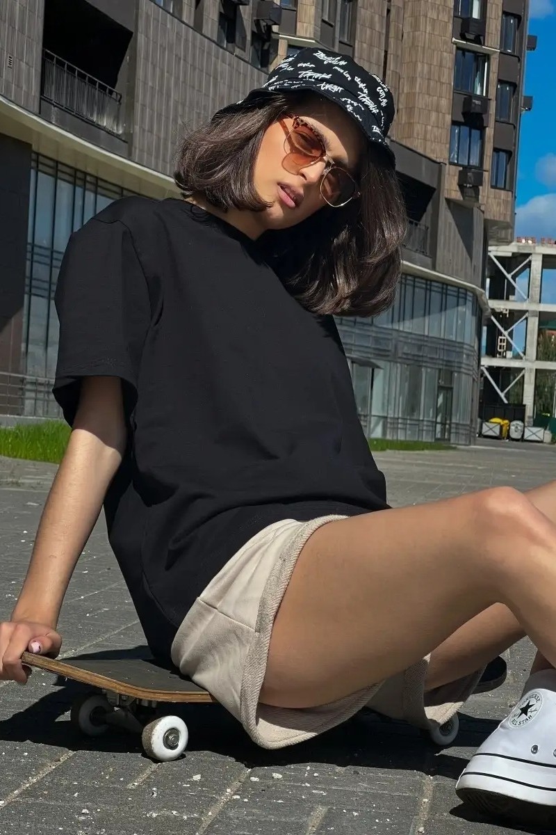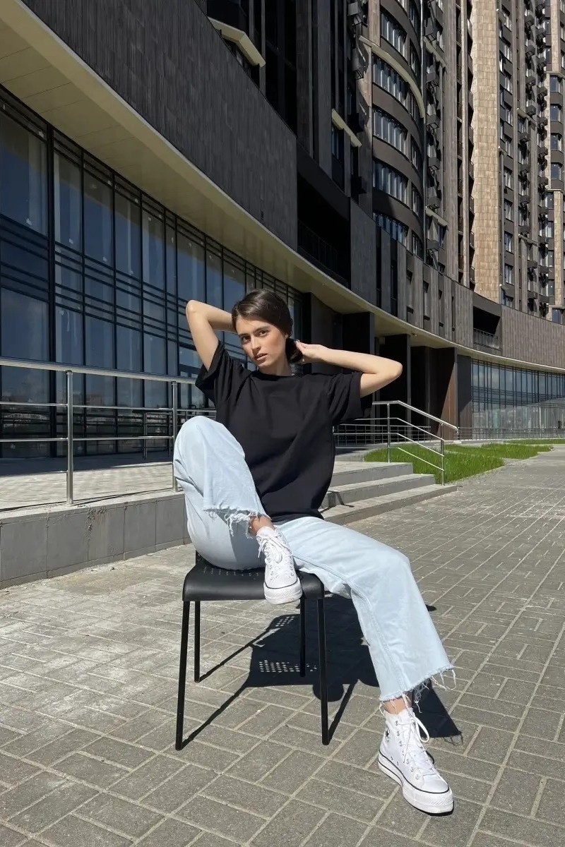 Представляем Вашему вниманию футболку оверсайз из плотного кулирного полотна, очень комфортную в носке, базовую универсальную модель. Идеальна с джинсами, кедами, шортами юбкой, можно стилизовать с чем угодно и как удобно. Абсолютно базовая вещь. Футболка удлиненная, оверсайз, свободного широкого кроя. За счет длины дополнит многослойный образ, что видно на последних фотографиях в галерее. Подойдет для тренировок, бега, особенно на улице, скроет все неровности фигуры, да и саму фигуру скроет, если Вам захочется собрать неприступный образ. Так же можно завязать узелком края футболки и носить с брюками и джинсами низкой или высокой посадки. Подойдет как высоким так и миниатюрным девочкам. Если хотите семейный образ - на Вашем мужчине тоже отлично будет смотреться. Носите с удовольствием.