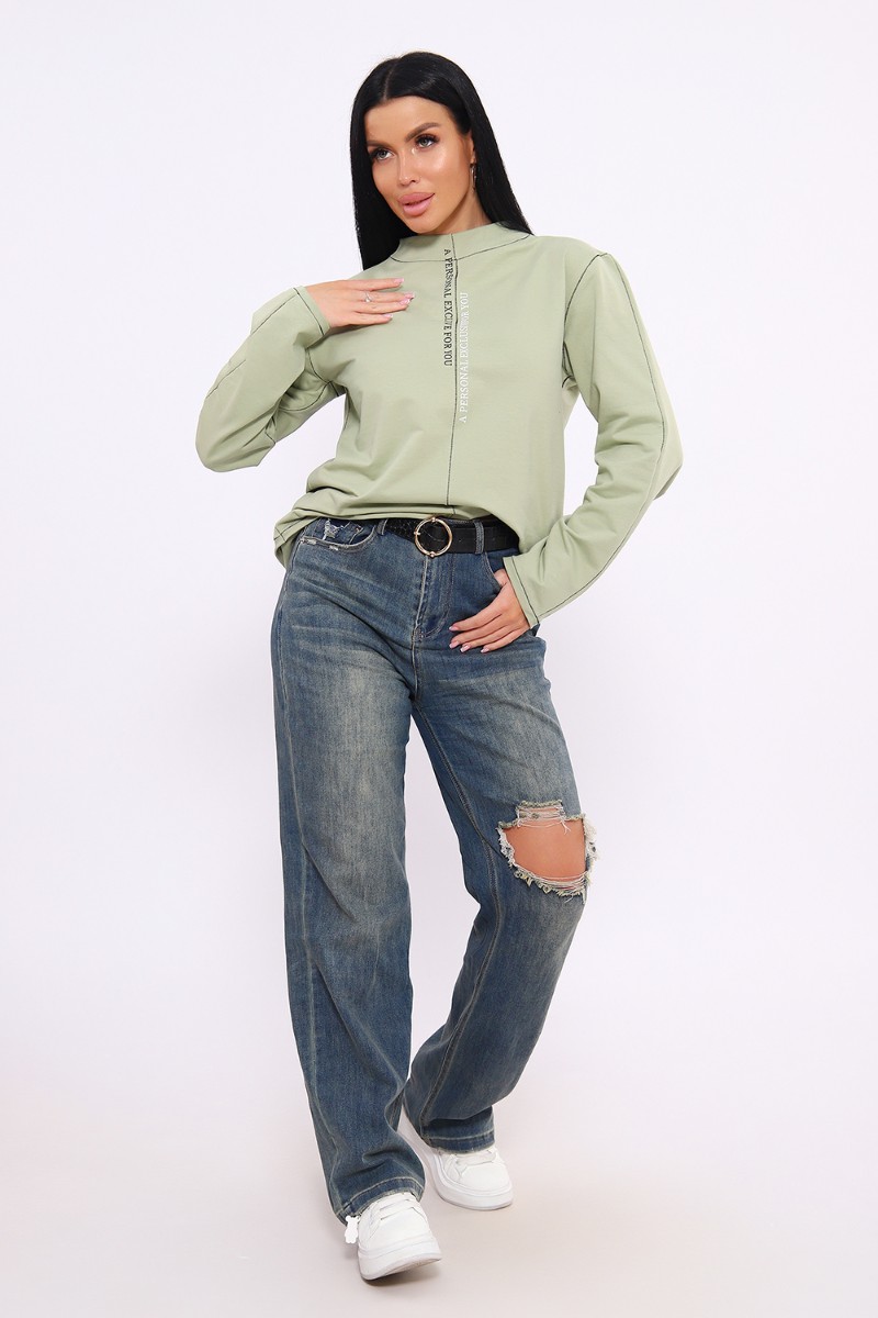 Лонгслив женский №74327 футер 2-х нитка (р-ры: 46-52) олива