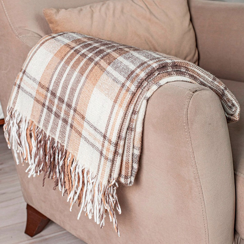 Плед "Vladi" шерстяной "Метро" 4/CANNY бело-бежево-коричневый