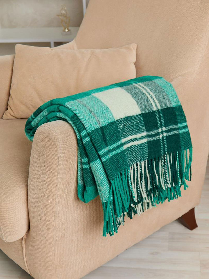 Плед "Vladi" шерстяной "Осло" бело-салатово-зеленый